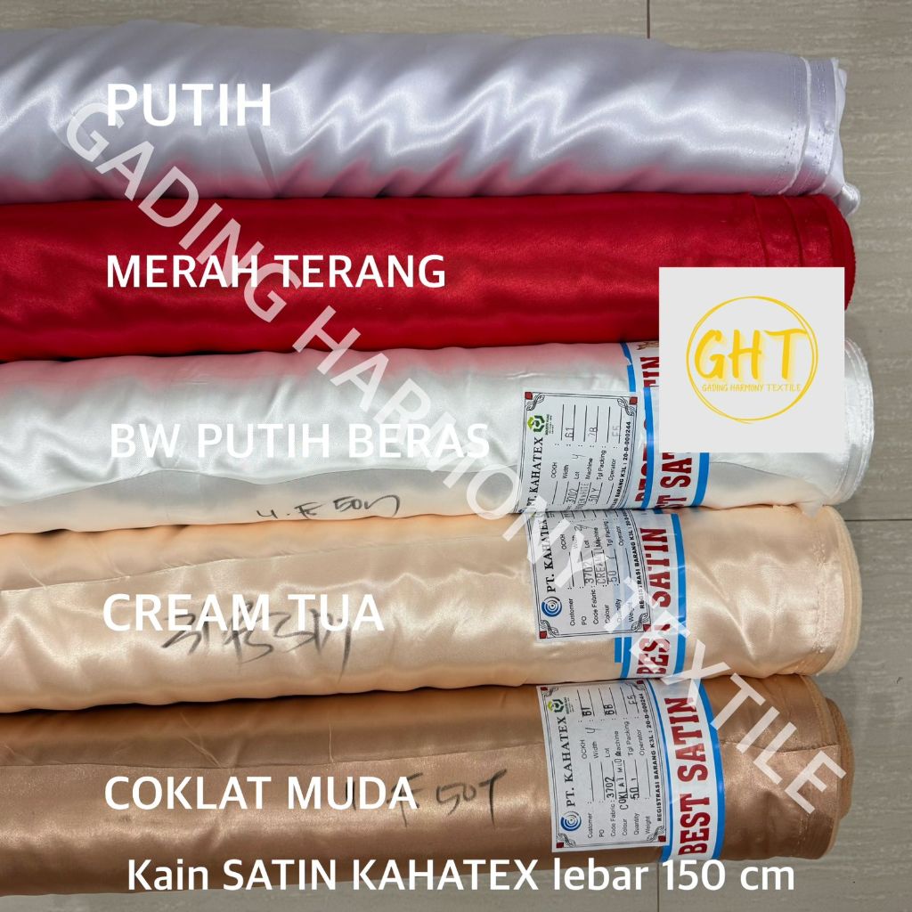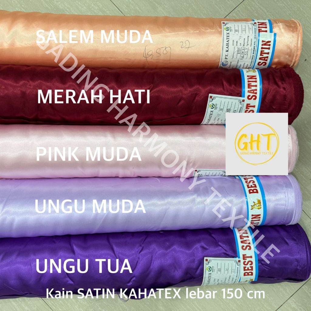 per 1 roll kain SATIN KAHATEX lebar 150 cm saten sateen polos polyster lembut mengkilap bahan bendera umbul umbu