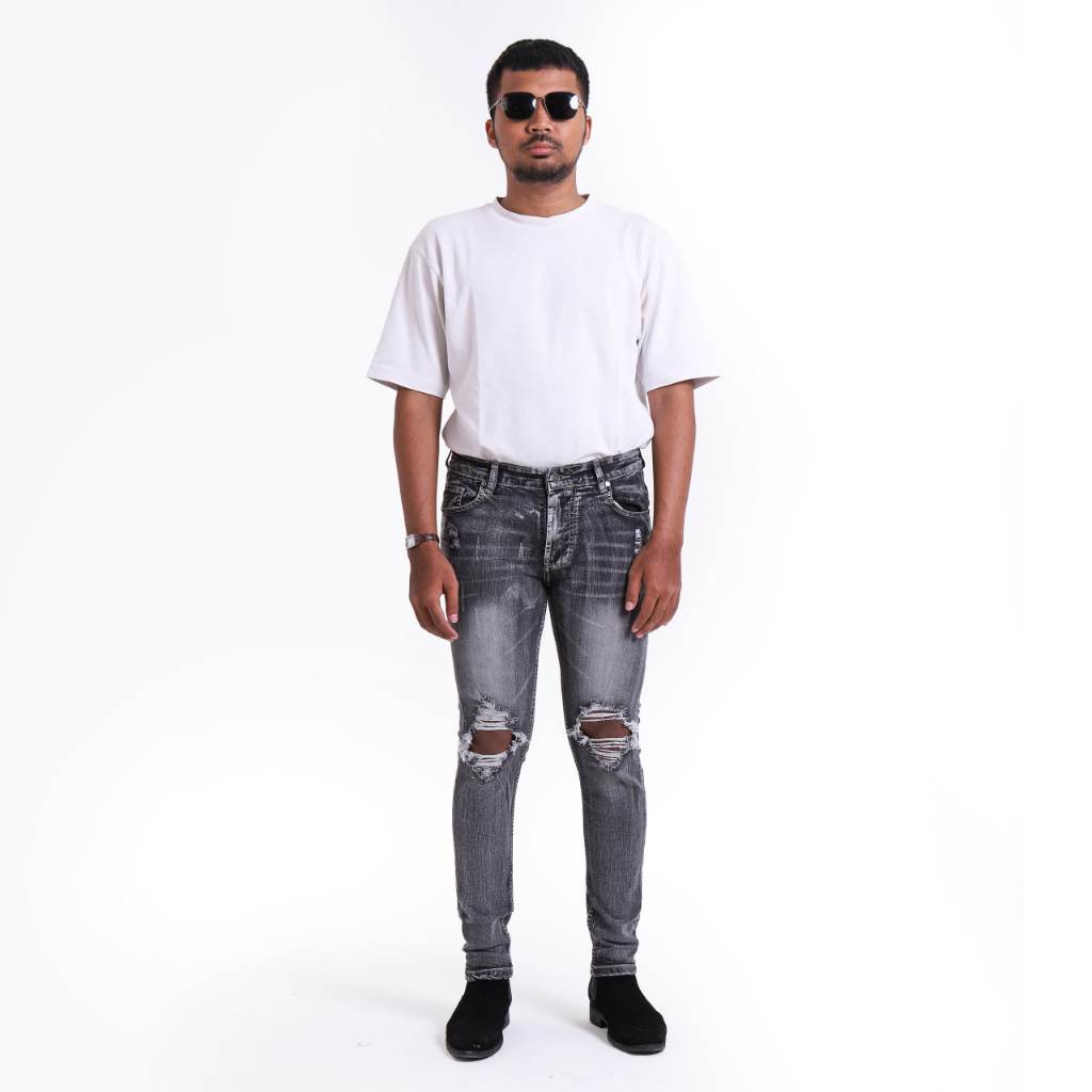 Weird Jeans Destroyed denim Iron Grey Celana Jeans Panjang Pria Slim Fit Ripped Jeans