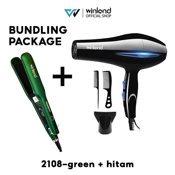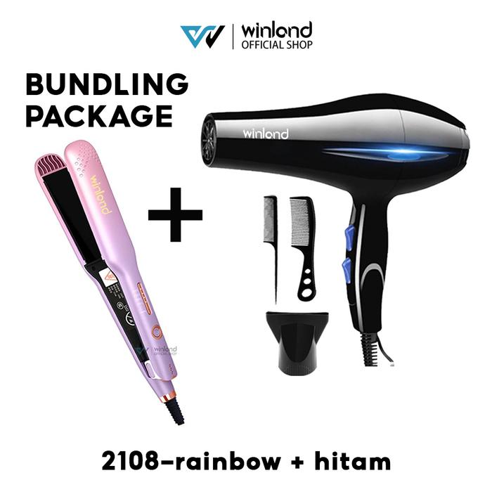 Winland ORI Bundle Hemat hair dryer pengering rambut+Catokan Rambut (2 in 1) 2 Package Beauty Electronic - 801+rainbow