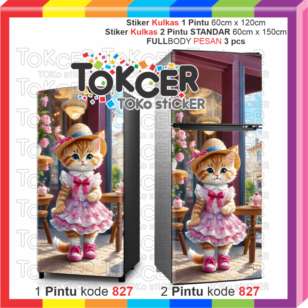 STIKER Kulkas LAMINATING GLOSSY Anti LUNTUR uk 1 Pintu atau 2 Pintu Motif KUCING