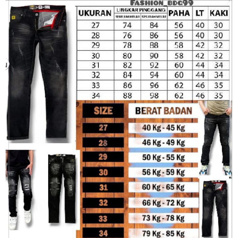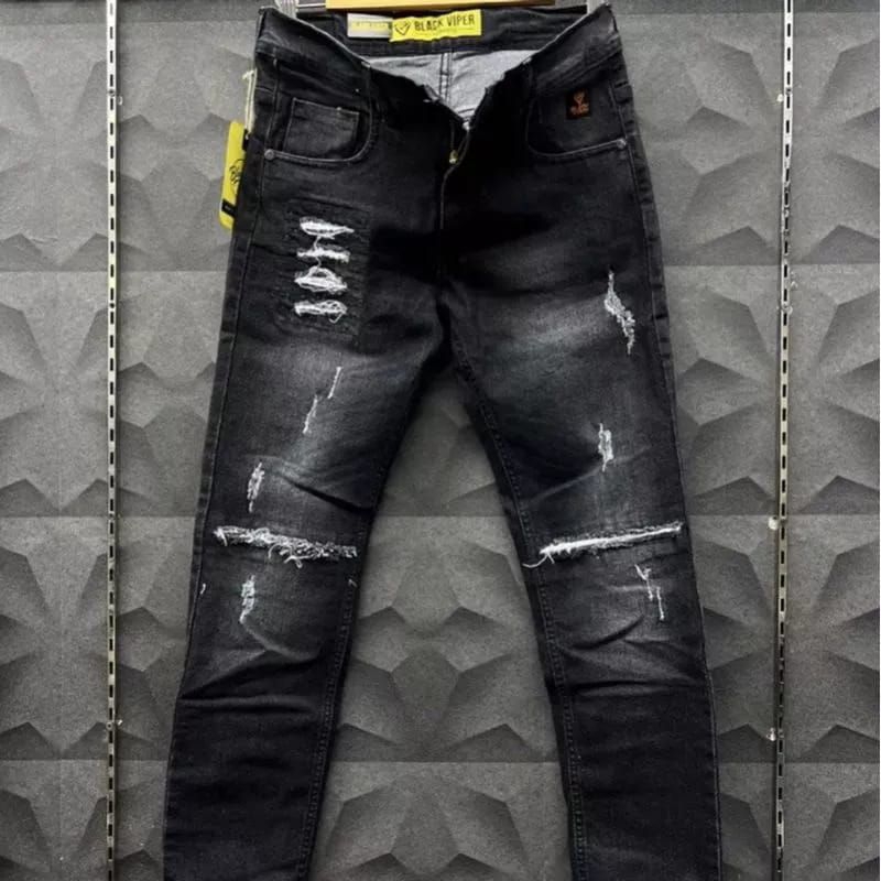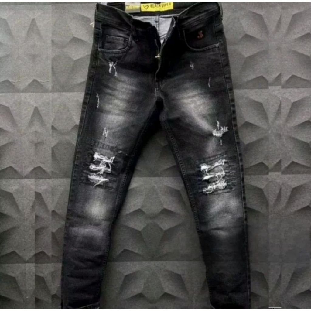 Jeans Slimfit Biker's RB77™ Series Ripped Black Hold, Celana Jeans Pria