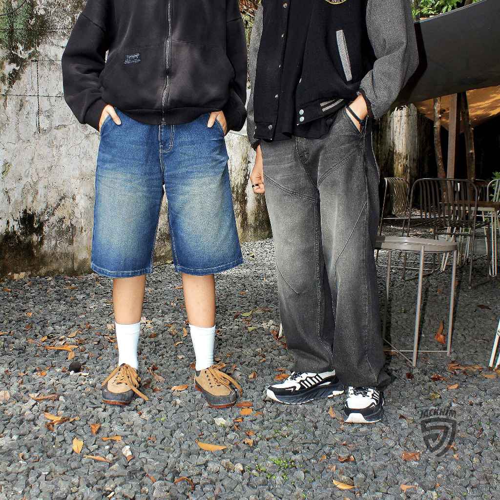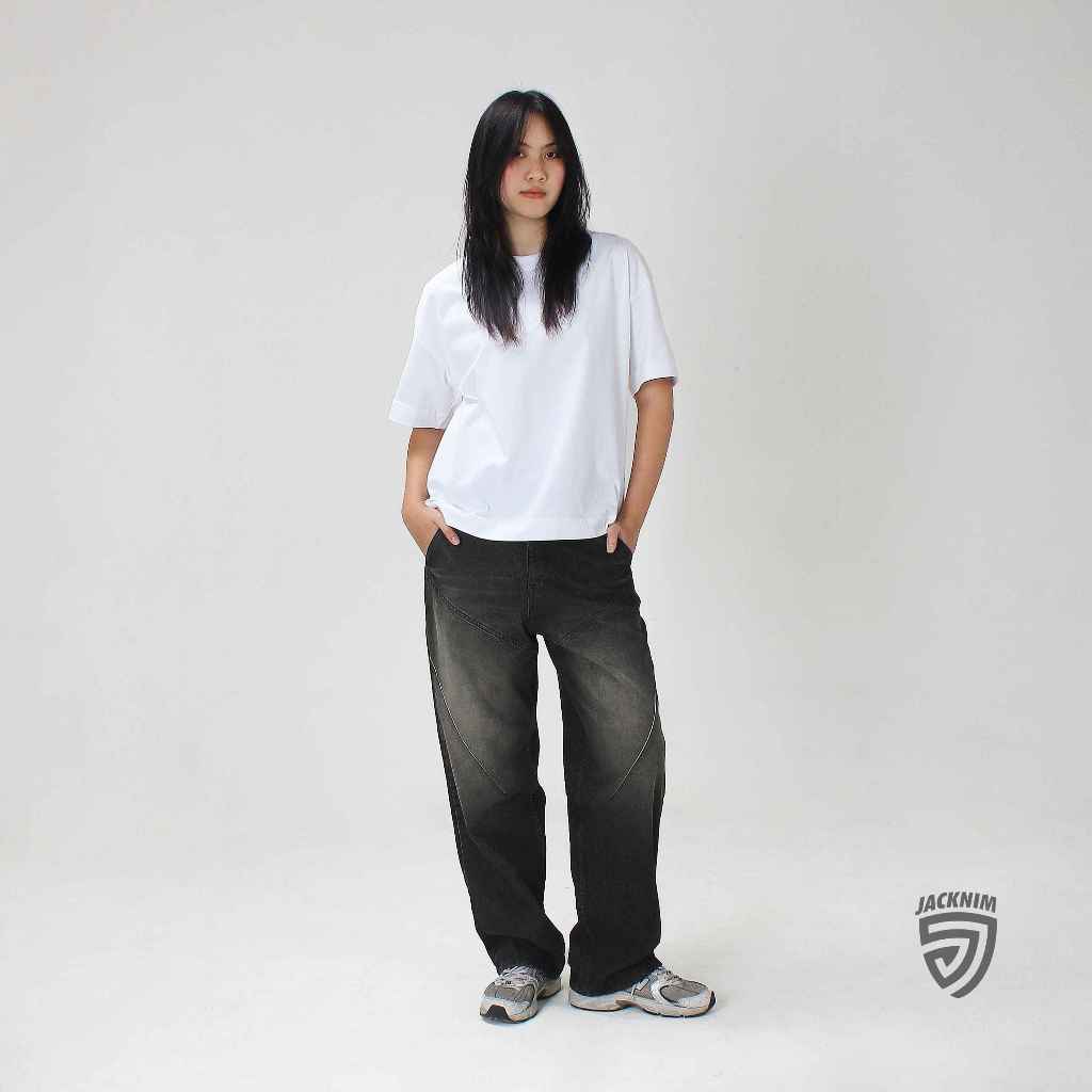 JACKNIM CELANA JEANS LOOSE PANTS PECAH POLA BLACK JUVENTUS UNISEX