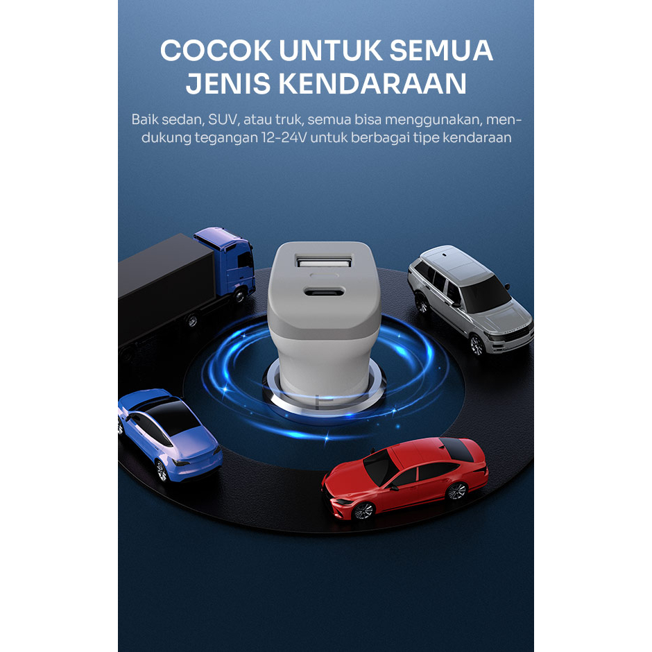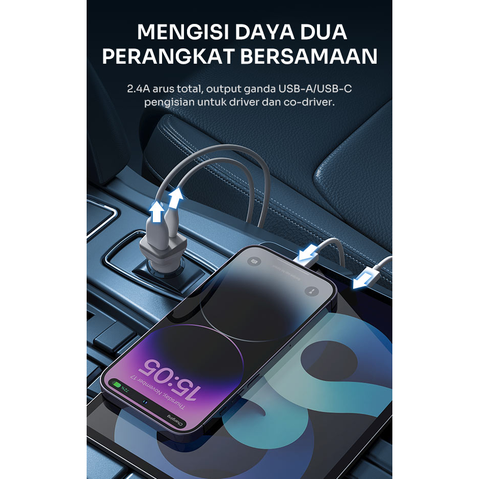 Robot Sever Mobil RT-C09 Adaptor Car Charger Mobil 2.4A Dual Port USB-A & USB-C Include Cable Micro Garansi Original Res