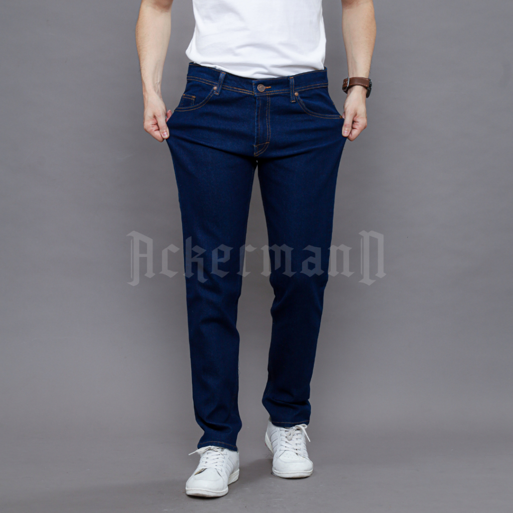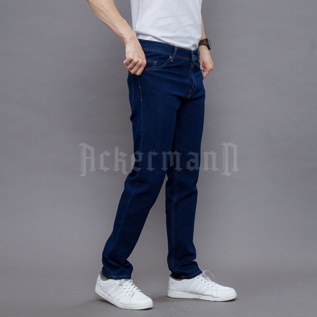 Ackermann By Mallvose Celana Jeans Denim Pria Panjang Polos Slimfit Navy 9OLD Premium