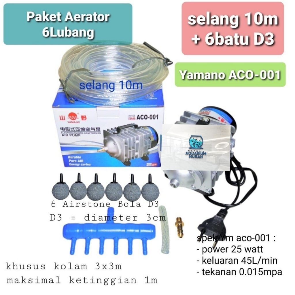 Paket Aerator Kolam 6 Lubang Yamano ACO-001. Untuk ternak budidaya ikan Kolam aquarium.