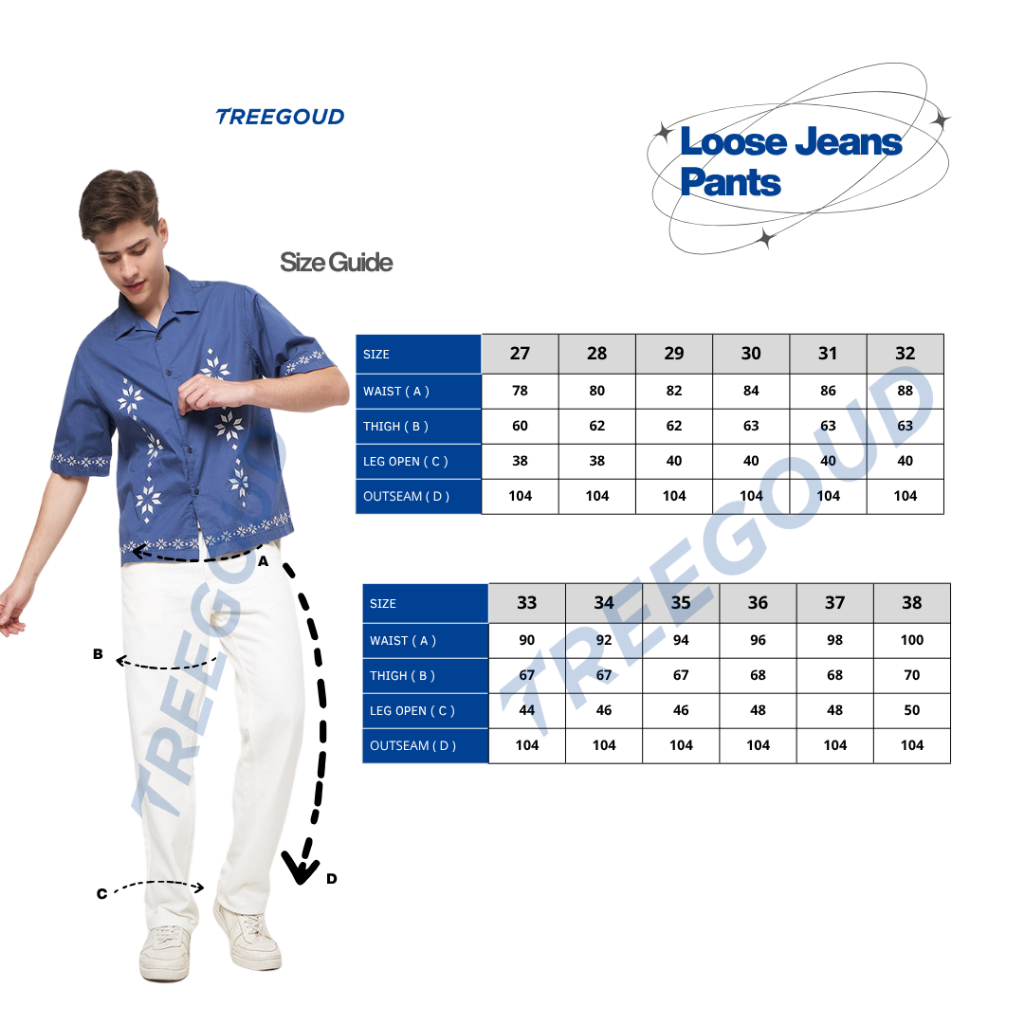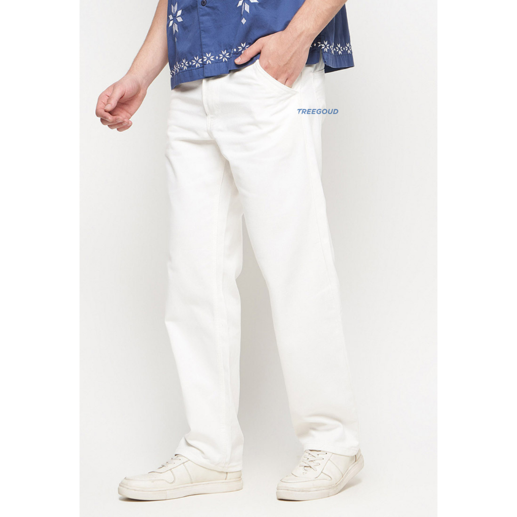 Treegoud Celana Jeans Longgar Pria – Cutting Loose Fit, Kuat & Tidak Mudah Menyusut Putih