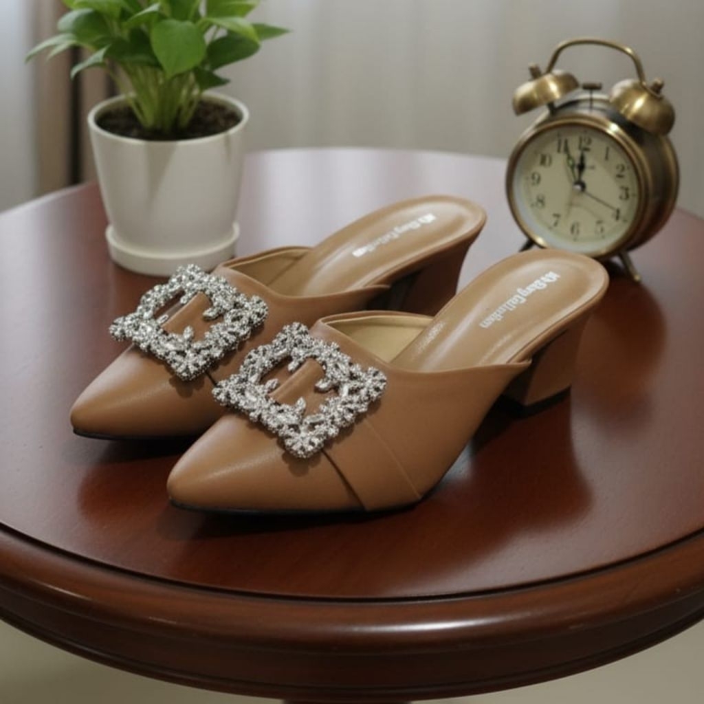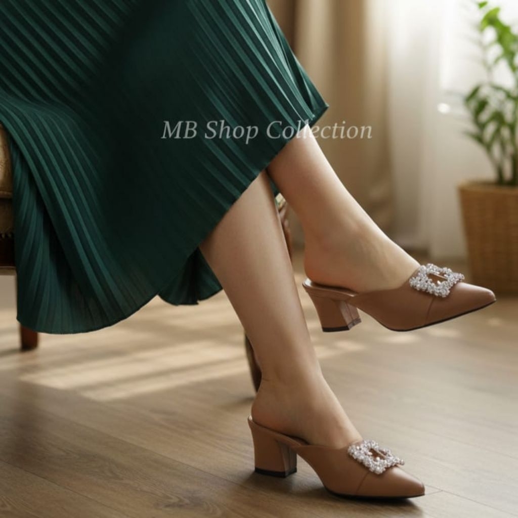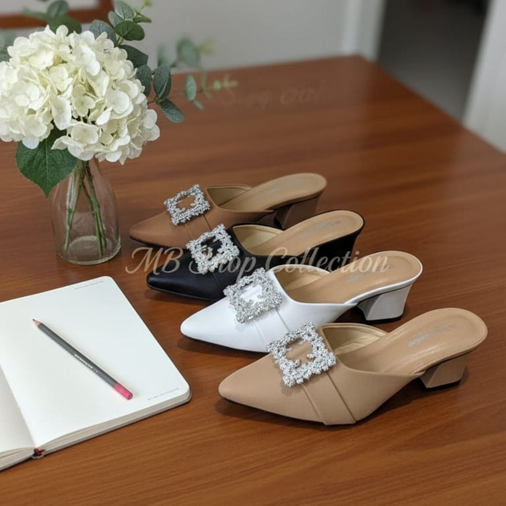 MB Shop - Najwa Sepatu Hak big size normal tinggi 5cm Hak chunky Sepatu Leryin Hak Mules Wanita Size 36-41 (UG01)