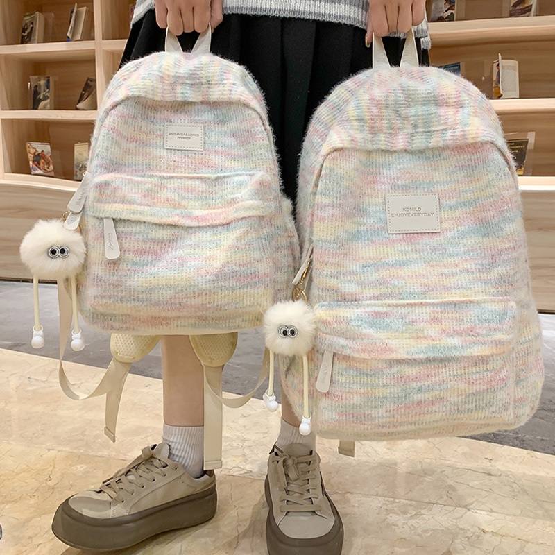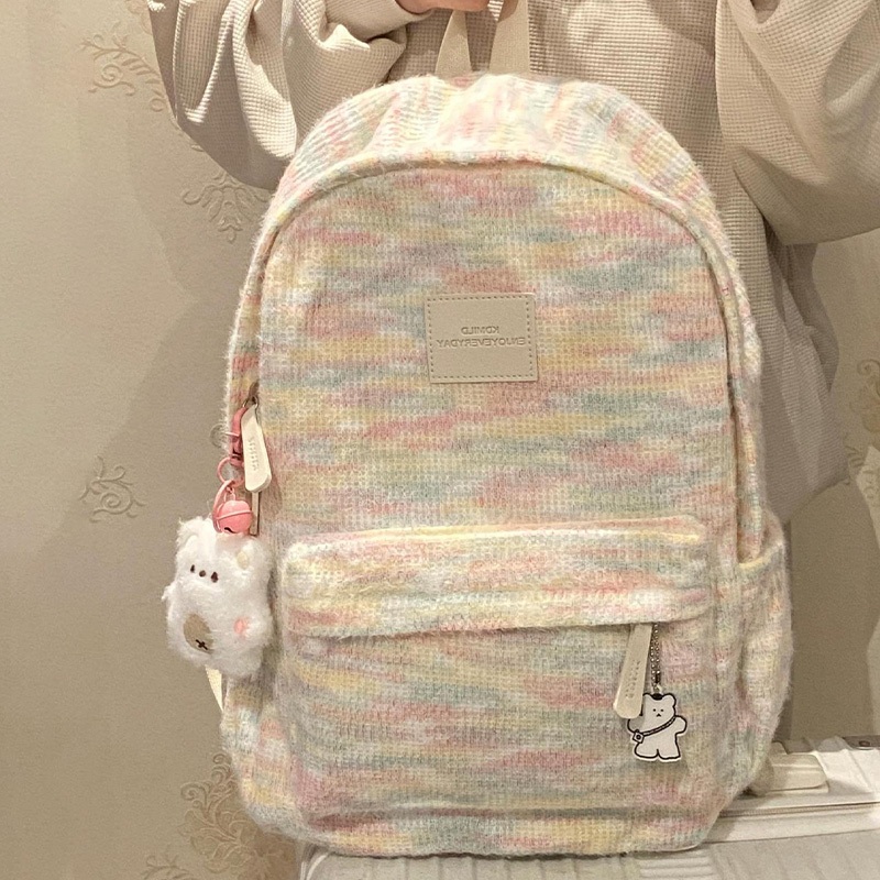 Pinkbubbly.[Ready] Pelangi mewah rajutan tas sekolah wanita Jepang tas bahu mini ransel siswa fashion bag kuliah Import