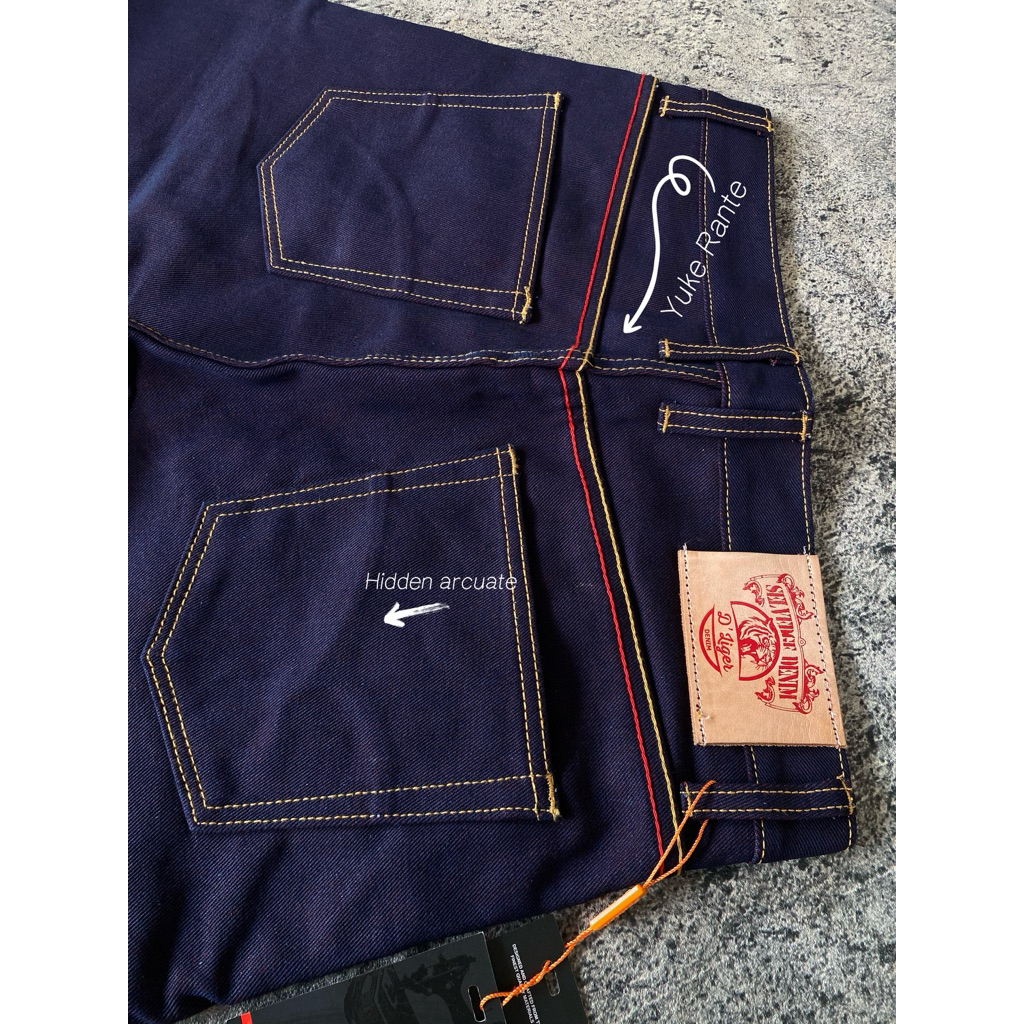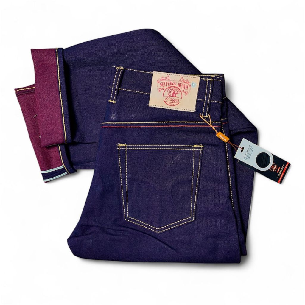 Denim Sanforezid 15 Oz Hidden arcuet Tebal Acsen Selved Hijau D'LIGER DENIM Celana Panjang Pria