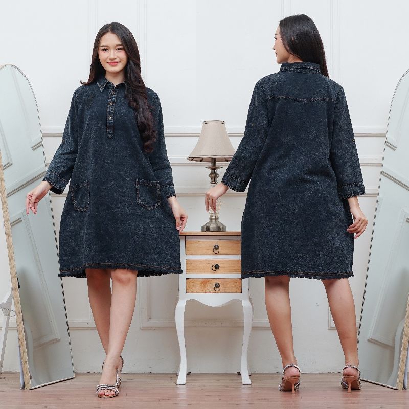 Tunik Jeans Wanita Dewasa Terbaru 2025 Kekinian Import Harga Murah Model Jumbo Bordir Ld 110,ld 120 dan ld 130cm