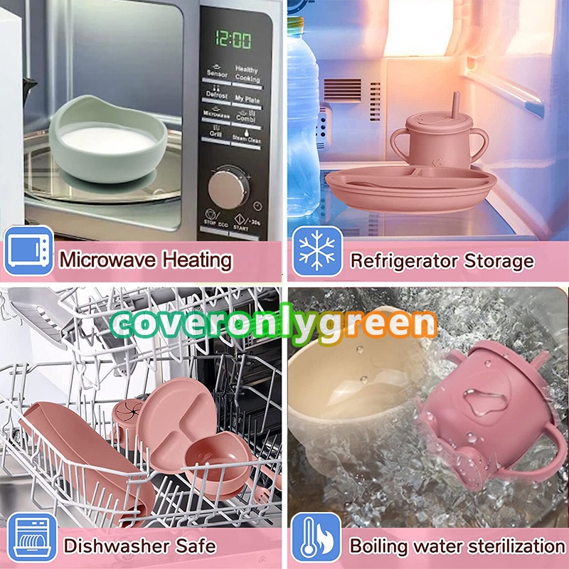 alat makan bayi alat makan silikon bebas drop proof tahan lama tempat makan bayi sendok garpu anak alat makan anak tahan