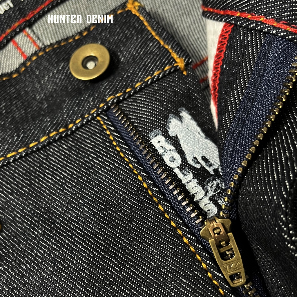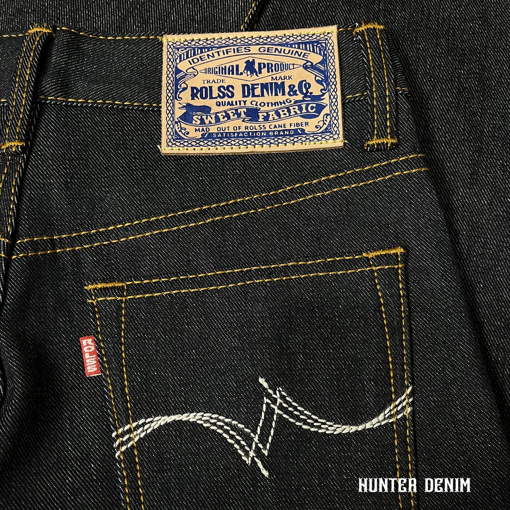 ROLSS DENIM celana selvedge accent pria denim original redline 15 oz black indigo sanforized