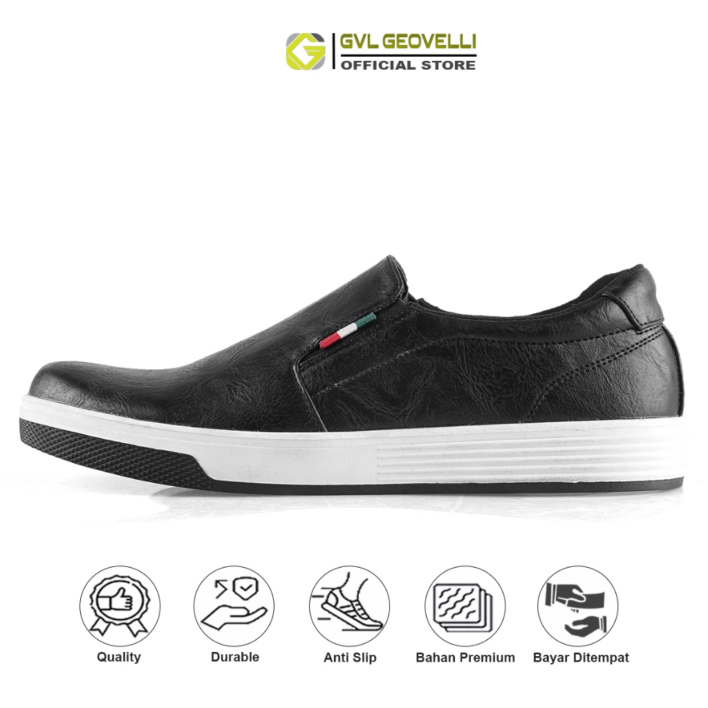 Gvl Geovelli Gasparo Gvl3133 Black | Sepatu Sneakers Slip on Pria Warna Hitam Ukuran 39-43