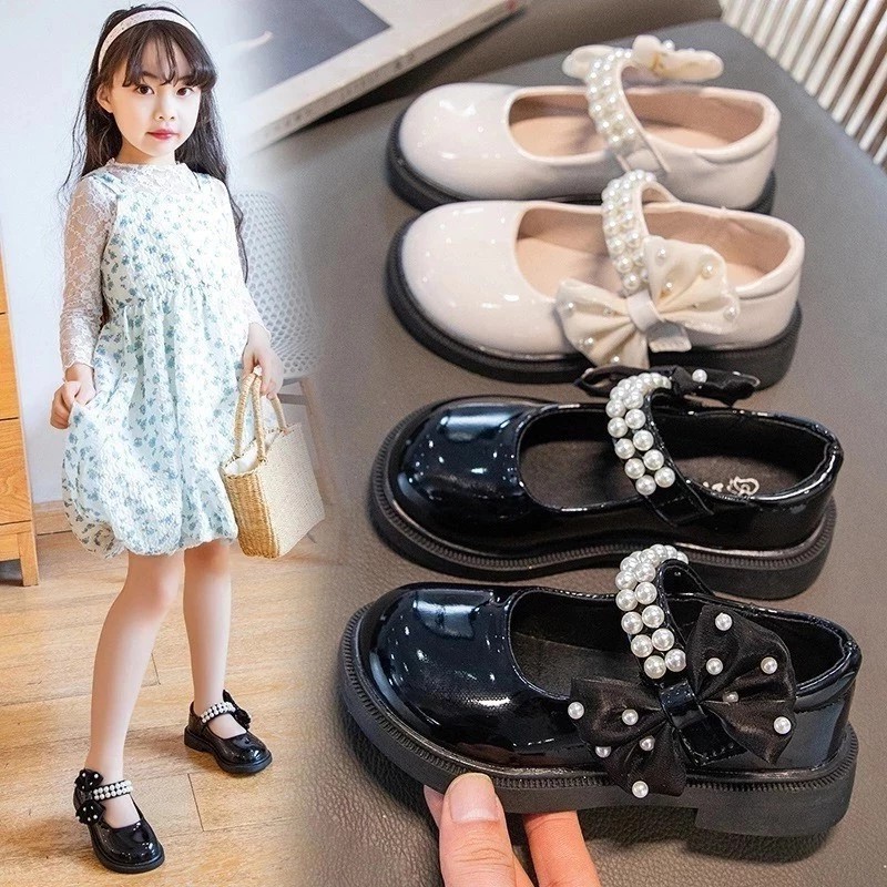 sepatu pesta anak perempuan mutiara glossy / sepatu docmart anak perempuan mewah model terbaru
