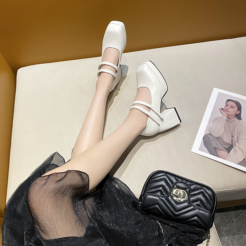 Sepatu High Heels Hak Tinggi Tahu Kerja Kantor Wanita Kekinian Korea Terbaru Import Murah Premium Hitam Putih Simple Sol Karet Strap Chunky Block Heels 12cm Big Size - Ukuran 35 36 37 38 39 40 41 42