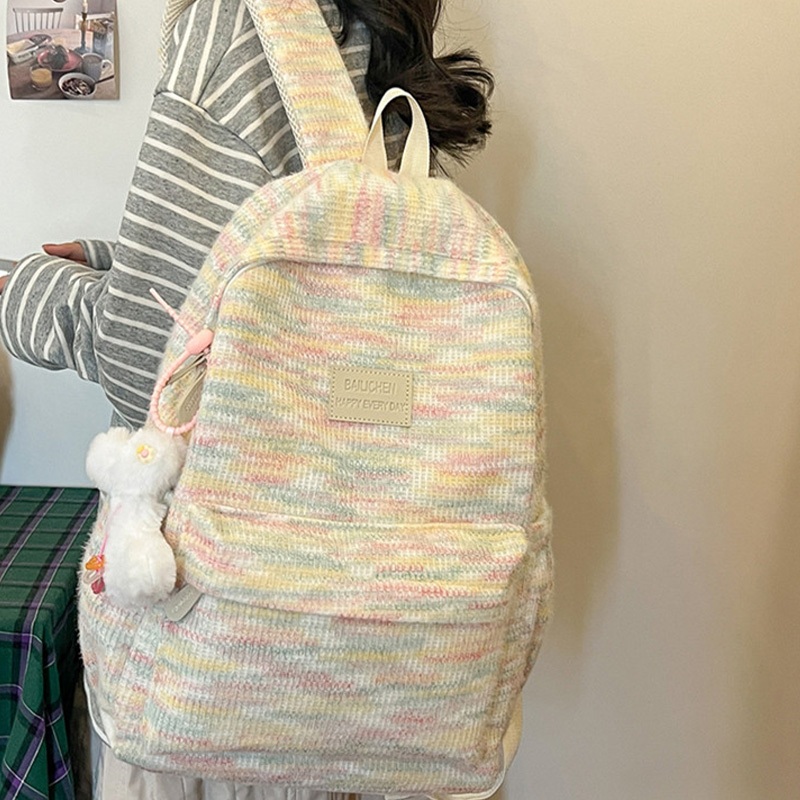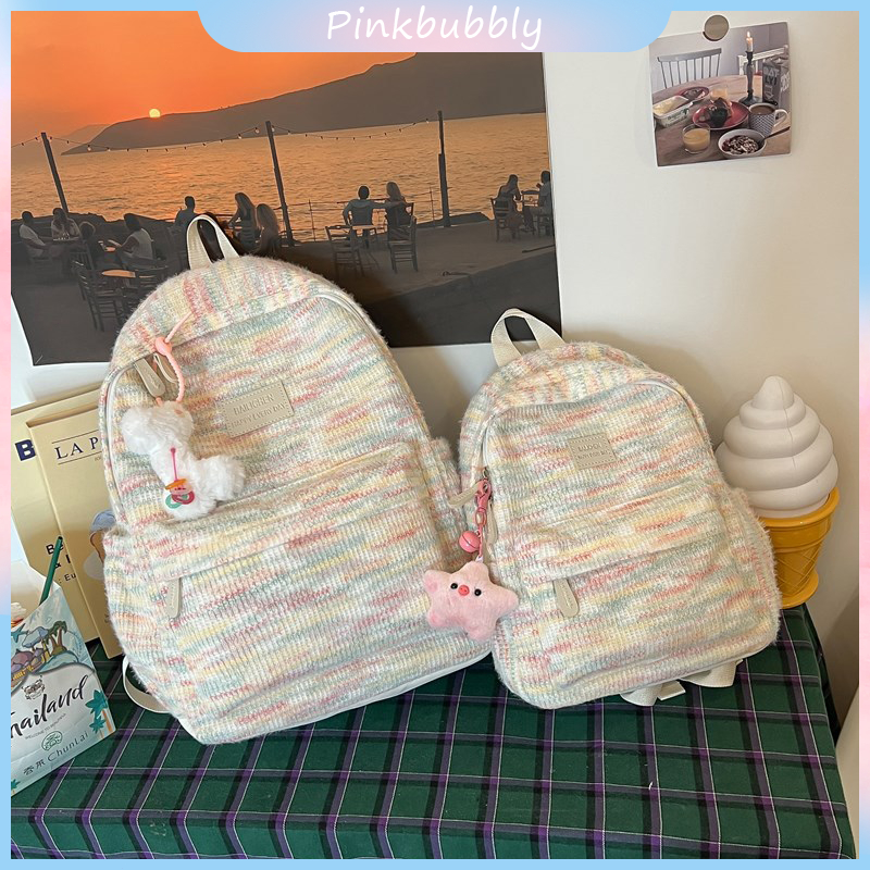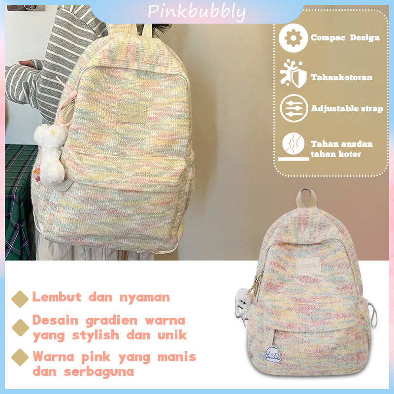 Pinkbubbly.[Ready] Pelangi mewah rajutan tas sekolah wanita Jepang tas bahu mini ransel siswa fashion bag kuliah Import