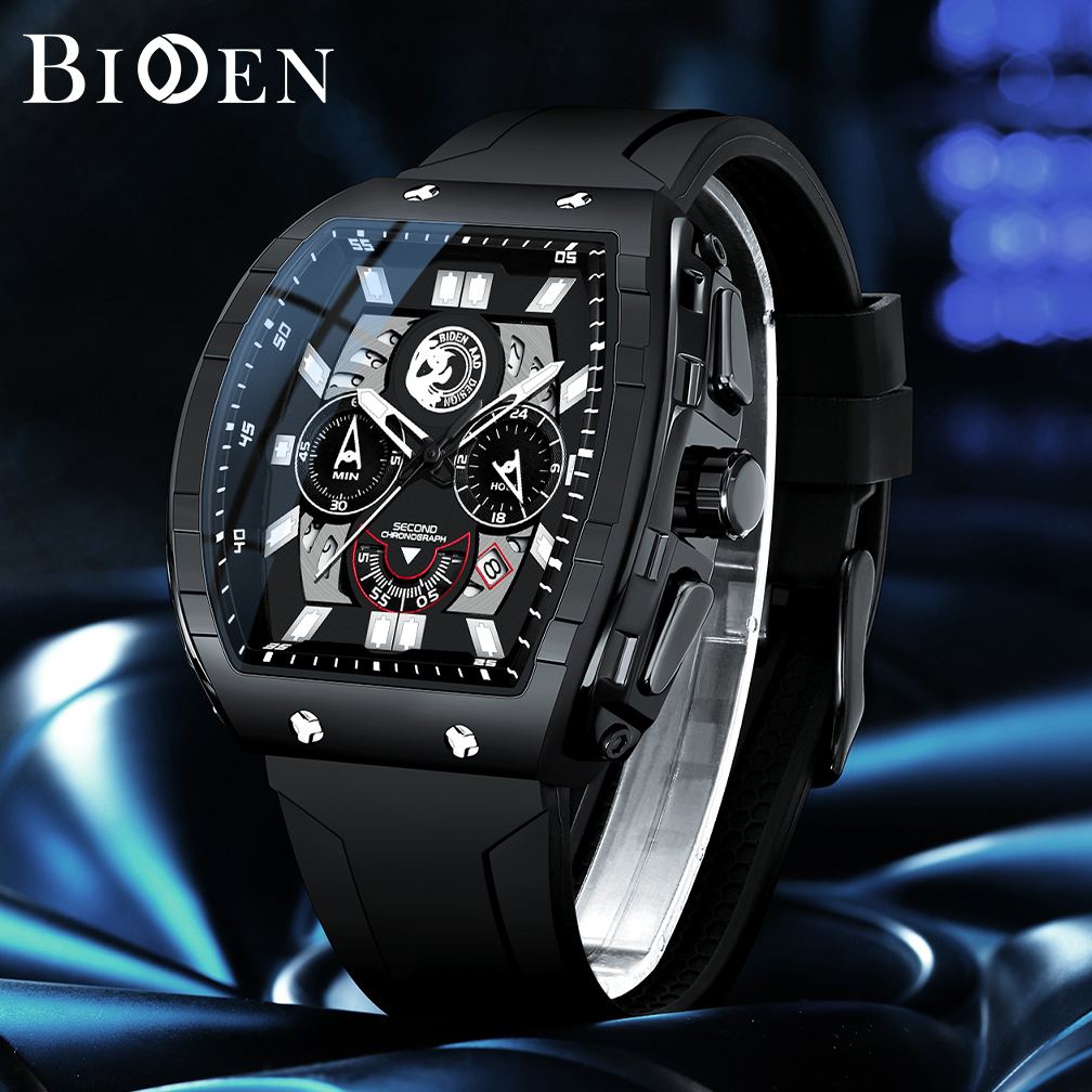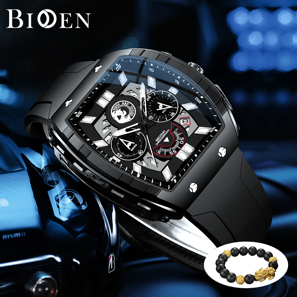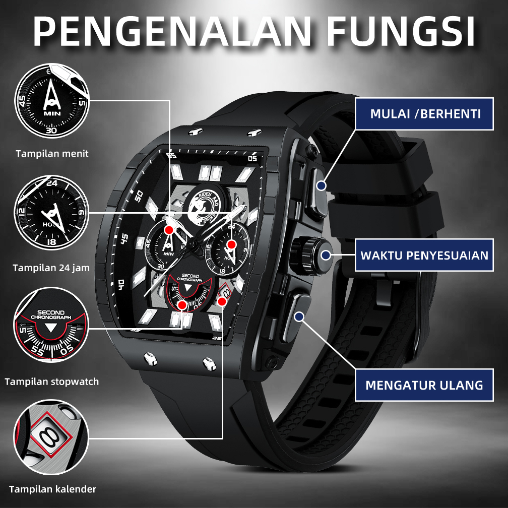 BIDEN Jam Tangan Pria Anti Air Original Multifungsi Olahraga Bercahaya Tali Silikon Jam Tangan Cowok