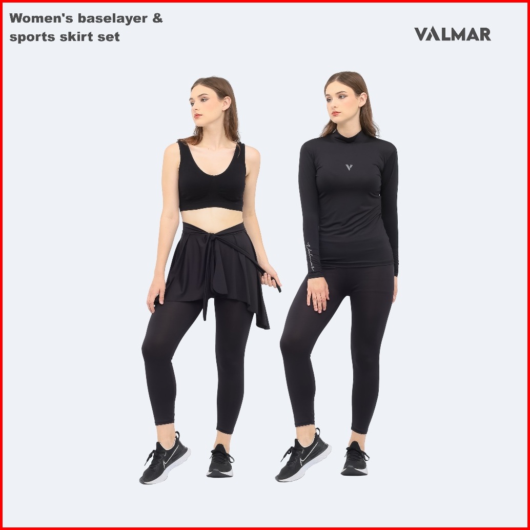 Valmar Sportwear - Set Baselayer Manset Rok Wanita Olahraga - Hitam