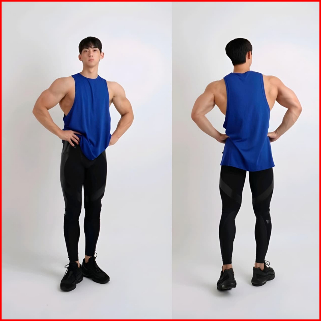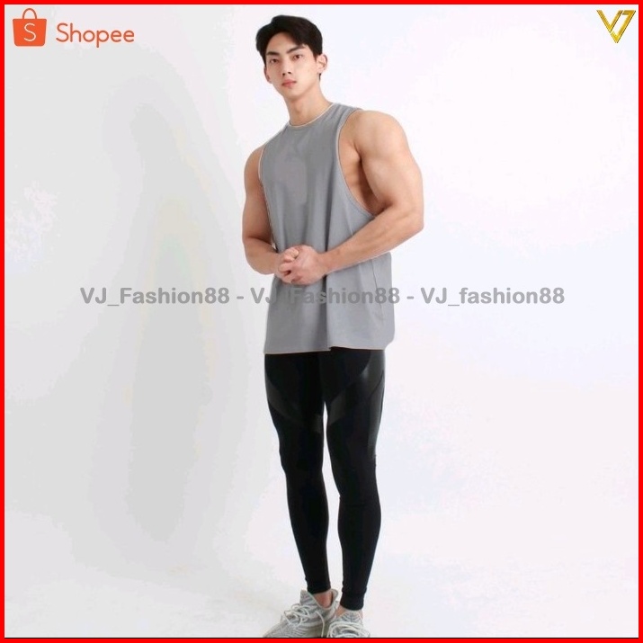 Muscle Tank Top Singlet Fitness Pria Low Cut Deep Cut Gym Sleeveless Kaos Olahraga Atasan Tanpa Lengan