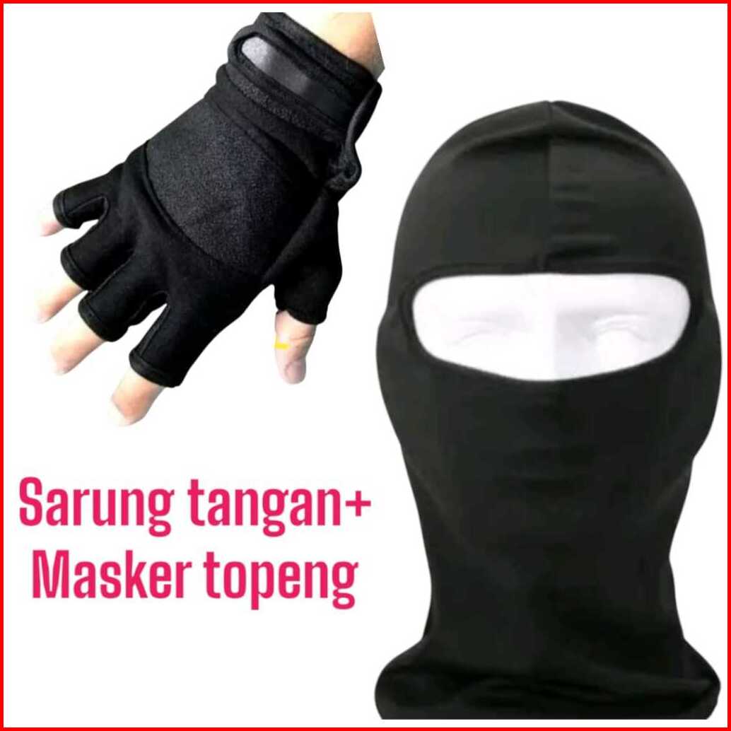Paket Motoran Sarung Tangan Dan Masker Topeng Balaclava Hitam Polos Pria Dewasa