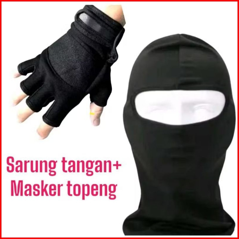 Paket Motoran Sarung Tangan Dan Masker Topeng Balaclava Hitam Polos Pria Dewasa