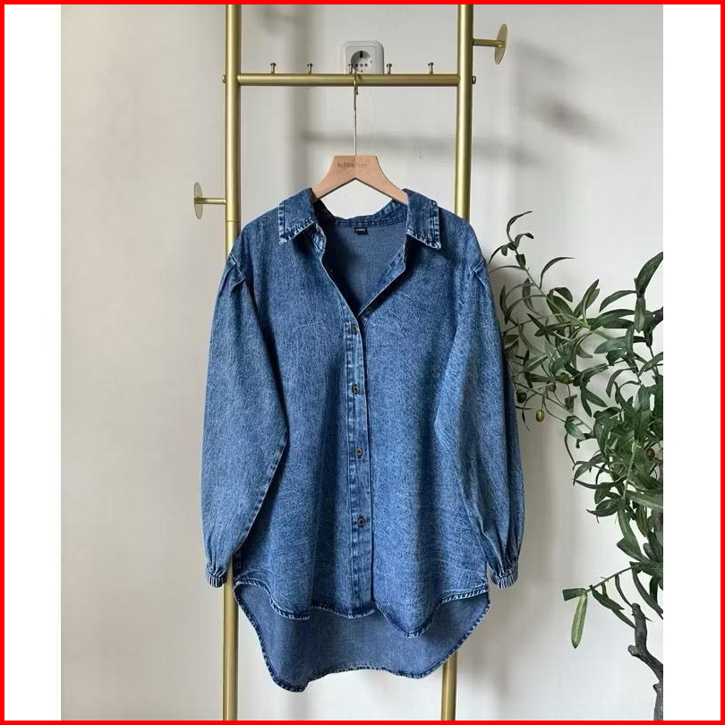 Kemeja Jeans Oversize Wanita Lengan Karet Nyaman
