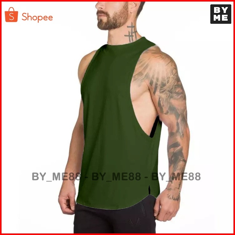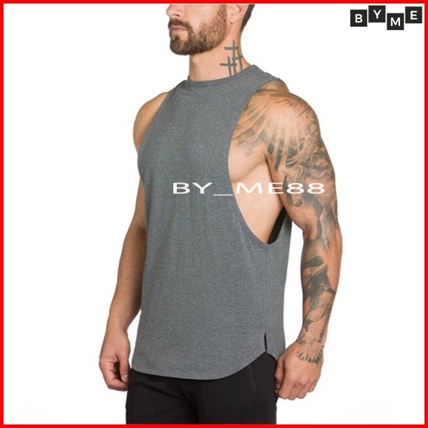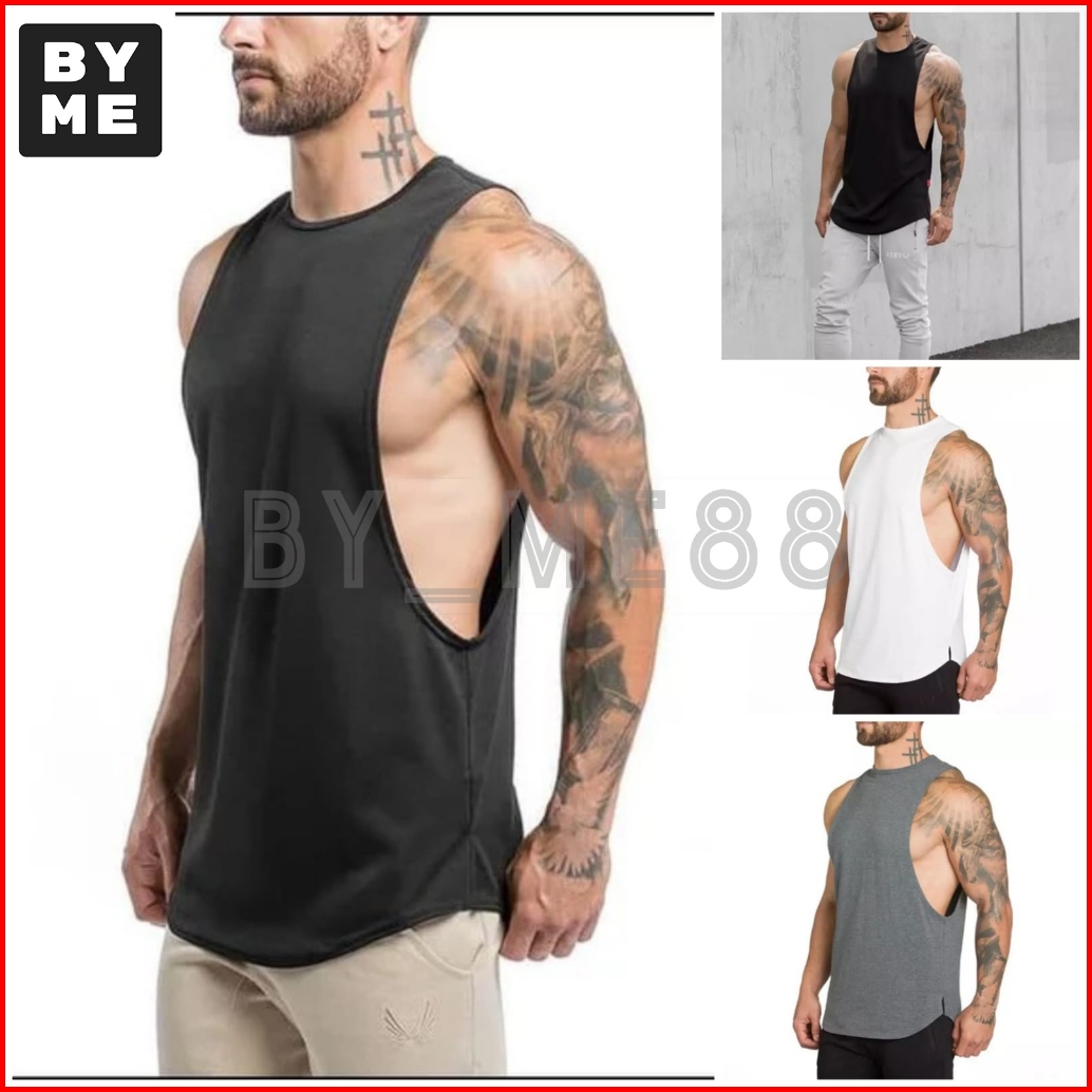 Singlet Pria Belahan Low Cut Kaos Tanpa Lengan Pria Sport Gym