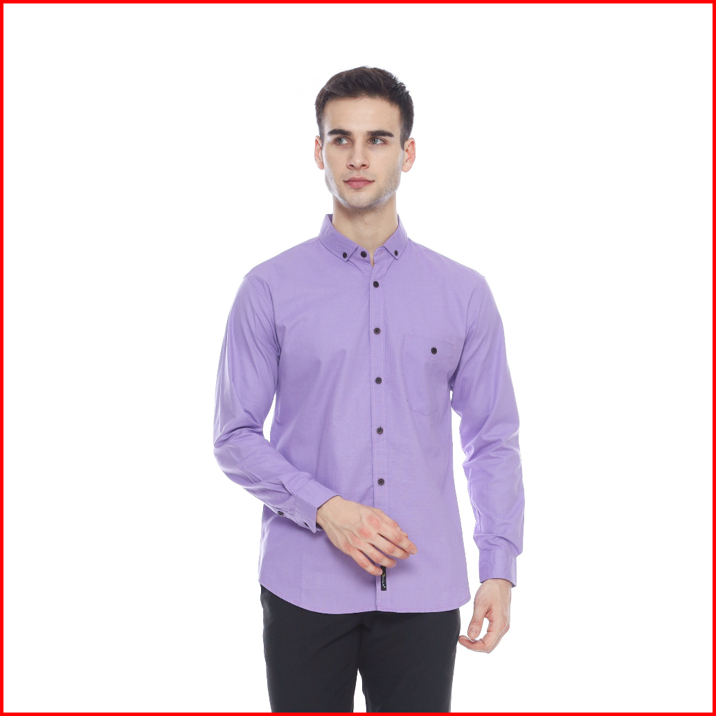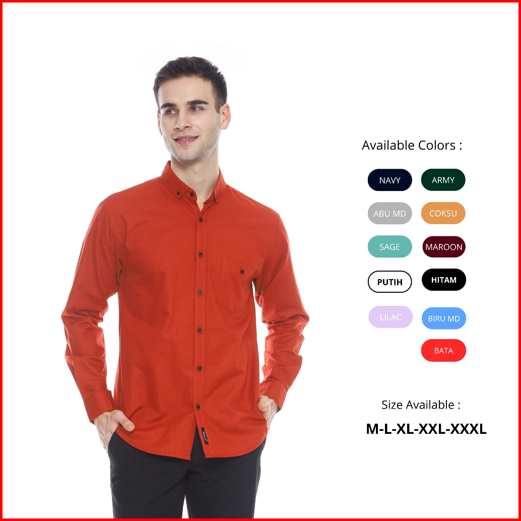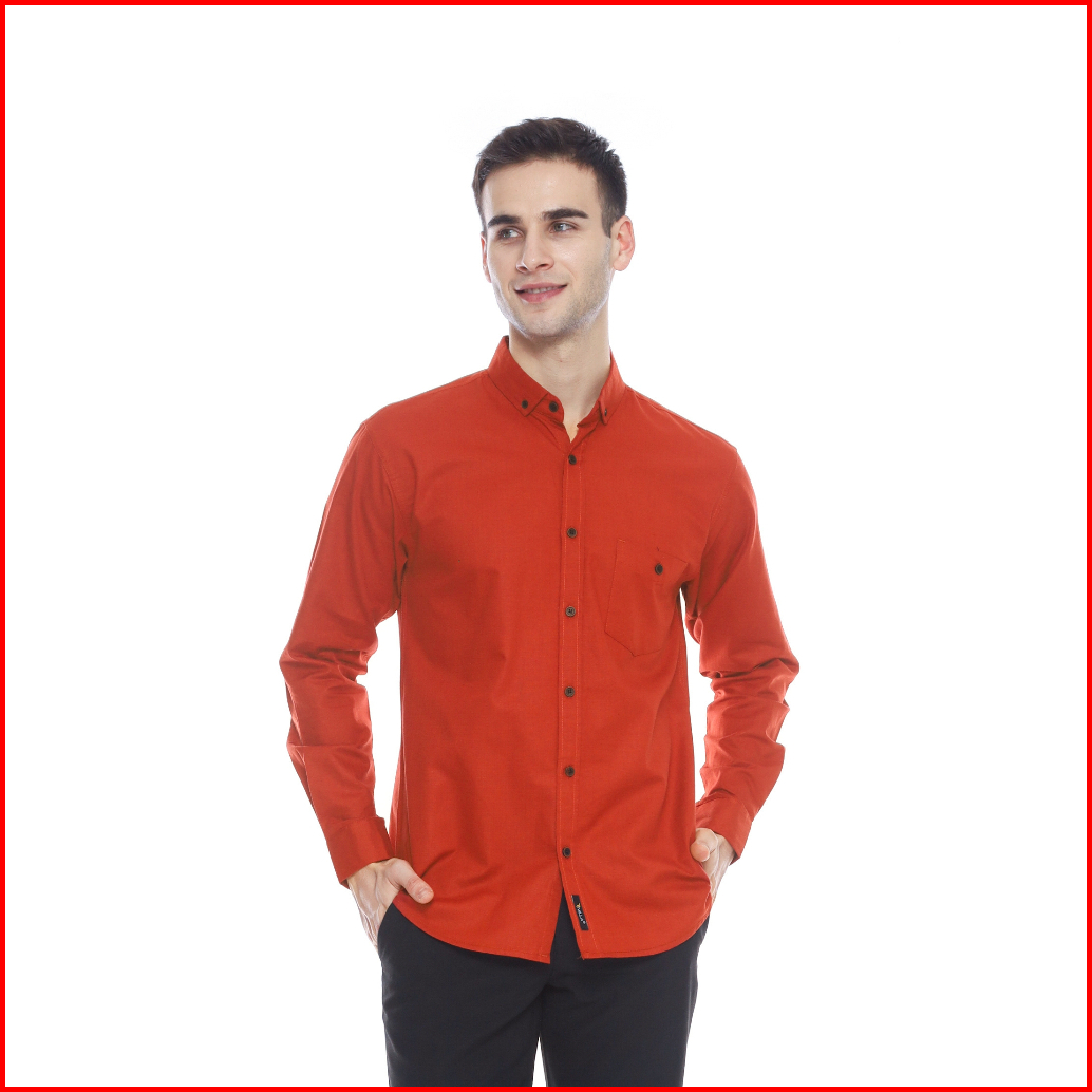 Kemeja Pria Model Slim Fit Merah Bata Lengan Panjang - Baju Polos Pria Gaya Casual Formal