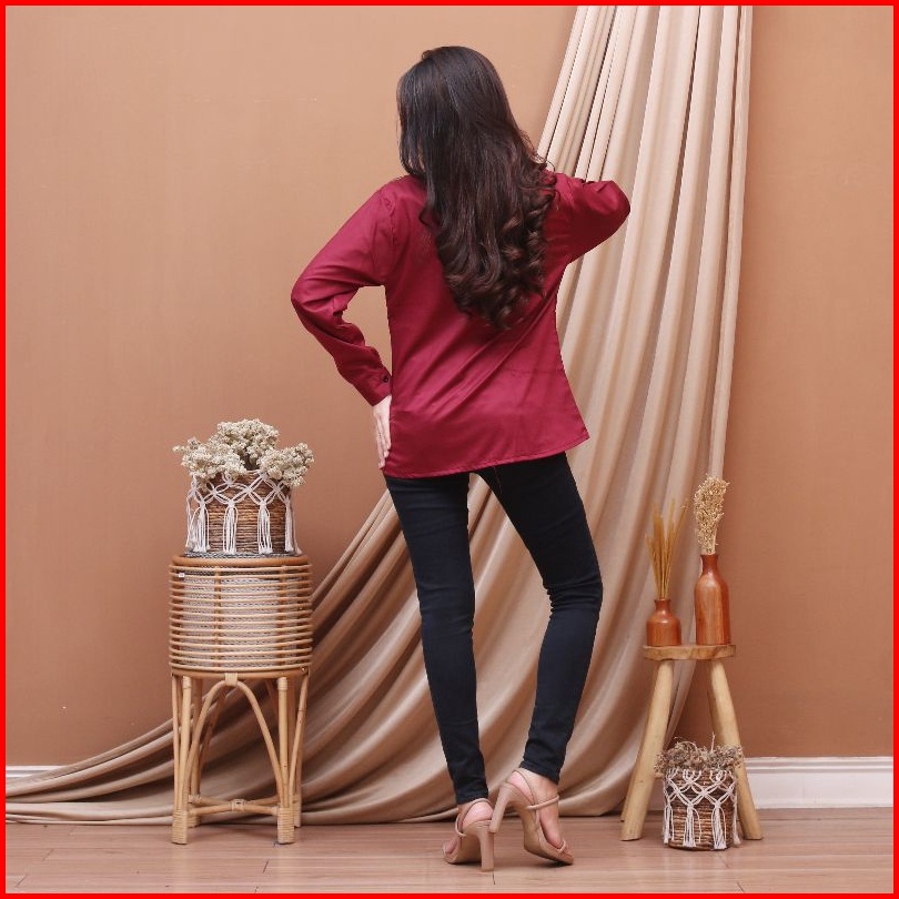 Kemeja Wanita Katun Lengan Panjang Polos Hitam