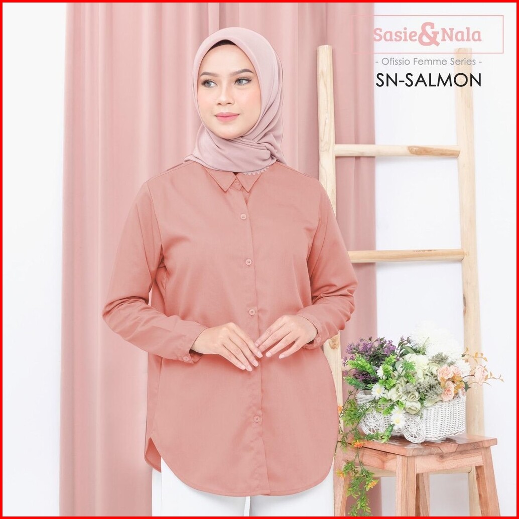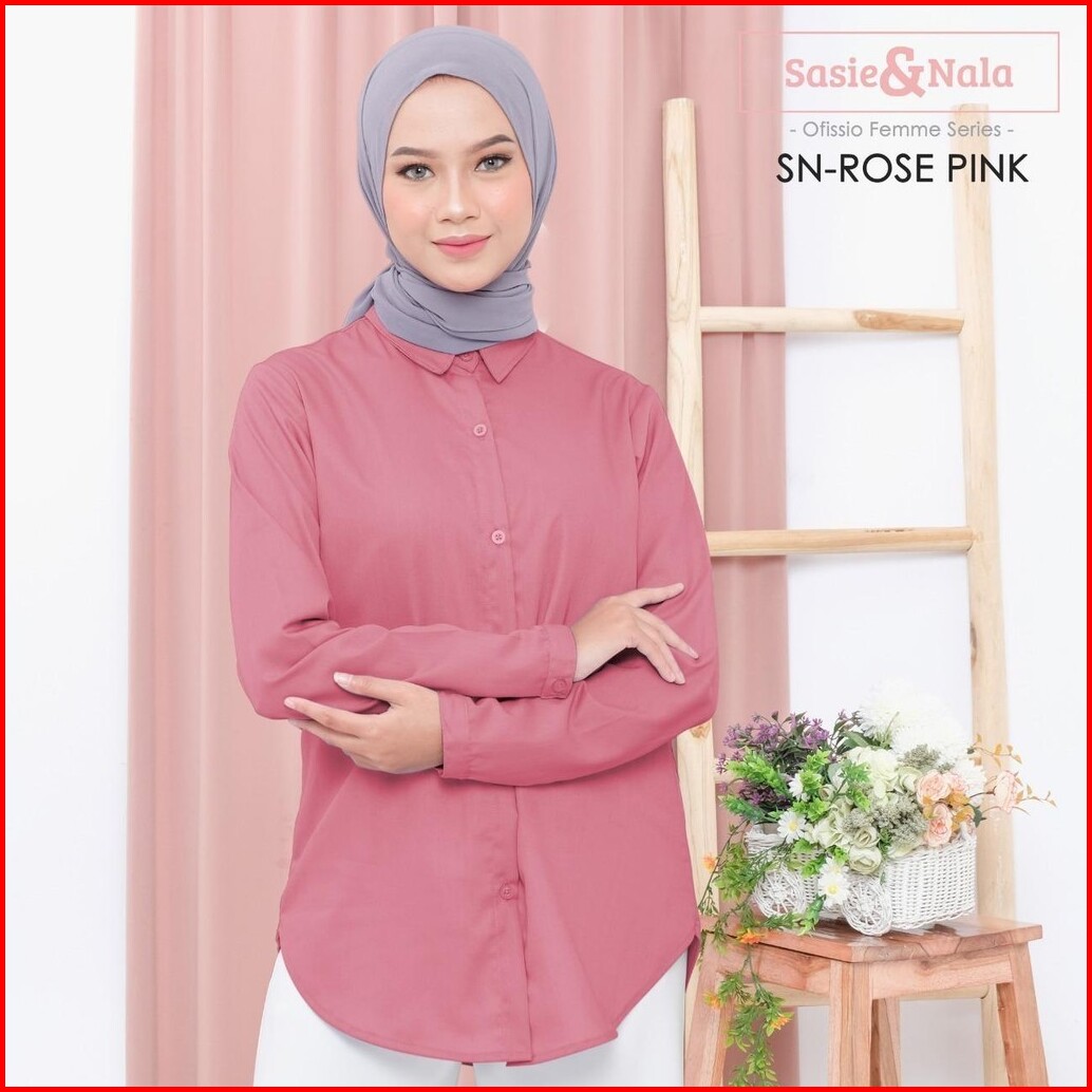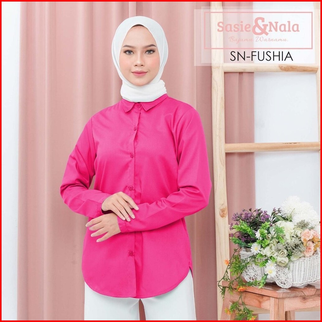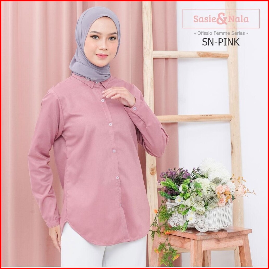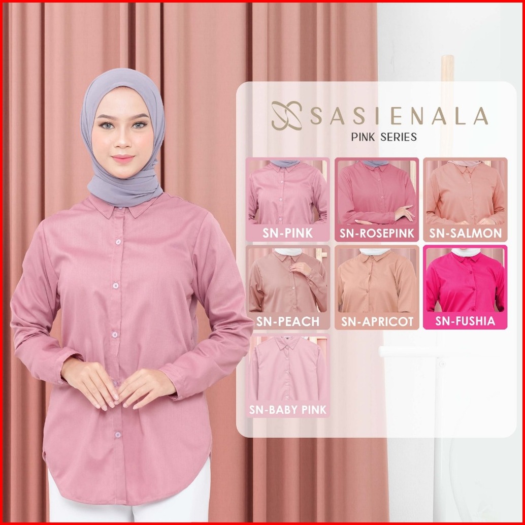 Kemeja Basic Lengan Panjang Atasan Wanita Katun Toyobo Sasienala - Pink Series