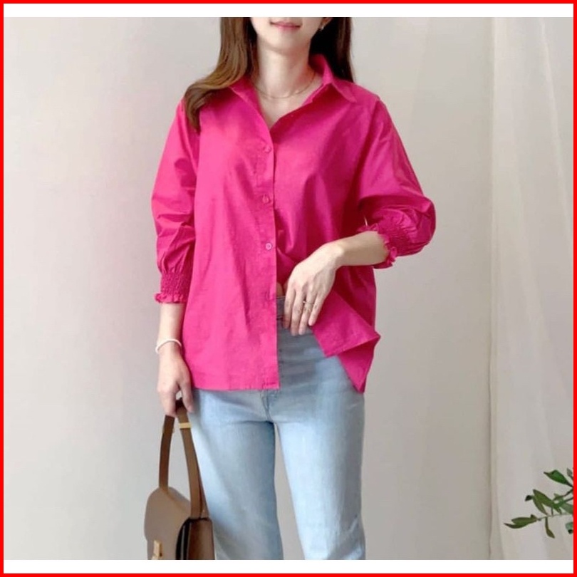 Moca Poplin Woman Shirt - Kemeja Wanita Lengan Karet Kemeja Pink Barbie