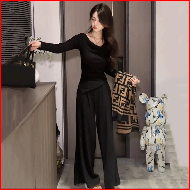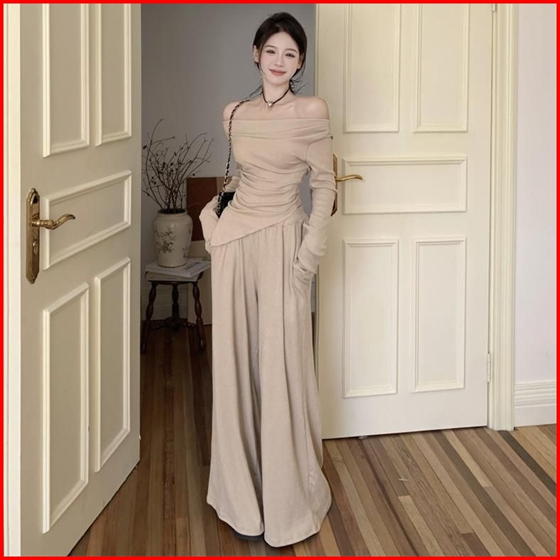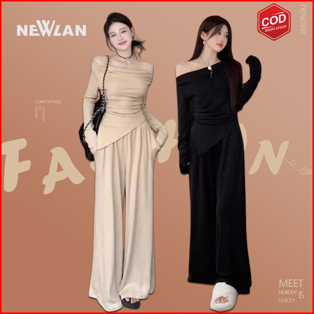 Newlan Zz128 Setelan Wanita One Set Wanita Rib Knit Premium Setelan Model Baju Set Lengan Panjang Knit Casual Basic Stre