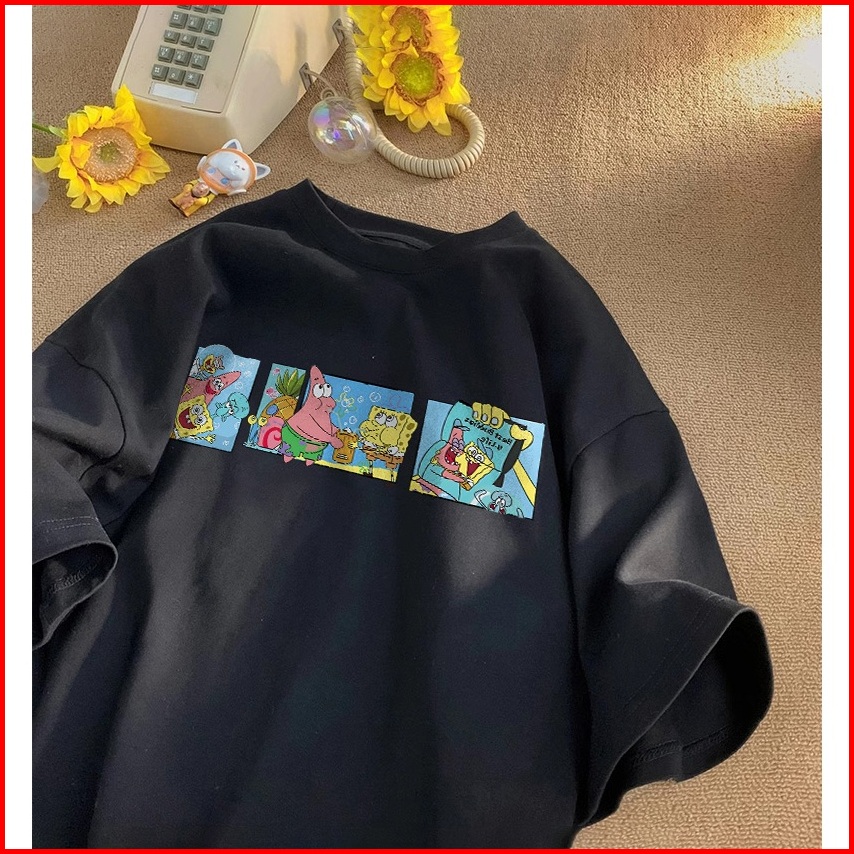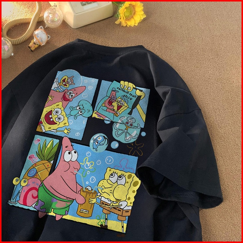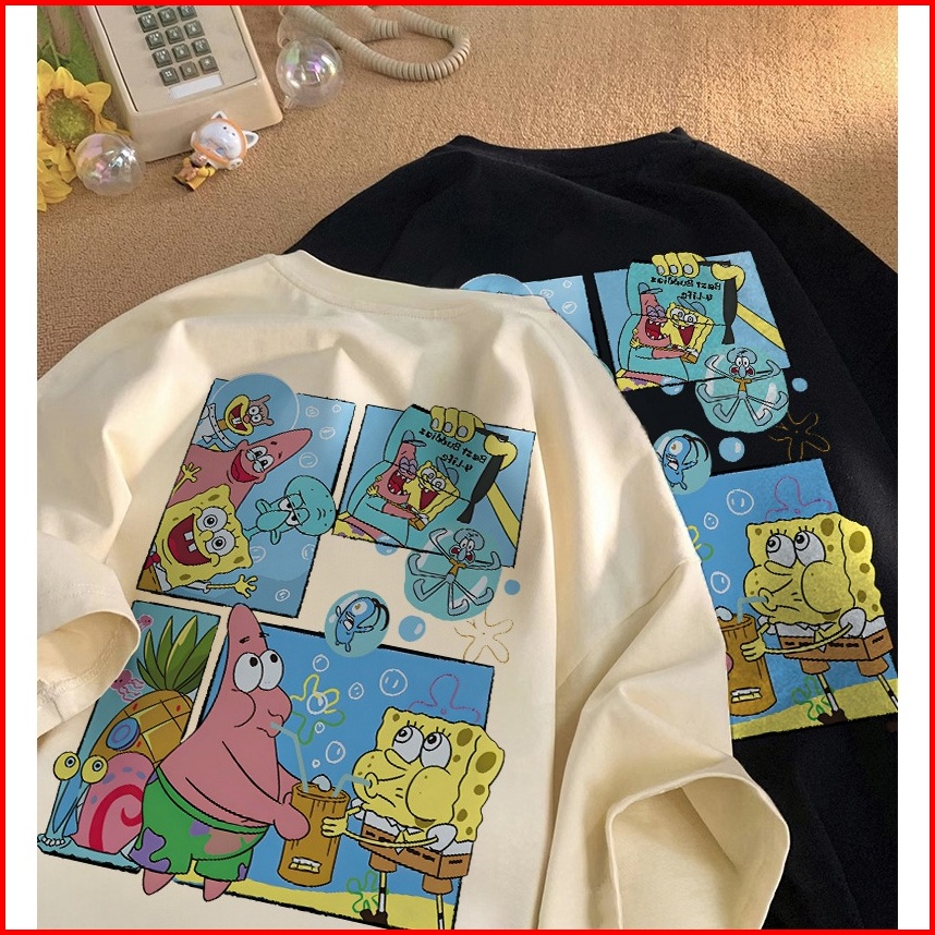 Fastfash Kaos Lengan Pendek Pakaian Pria Dan Wanita Oversize Vintage Spongebob And Patrick - Baju Kaos Polos Putih Berga