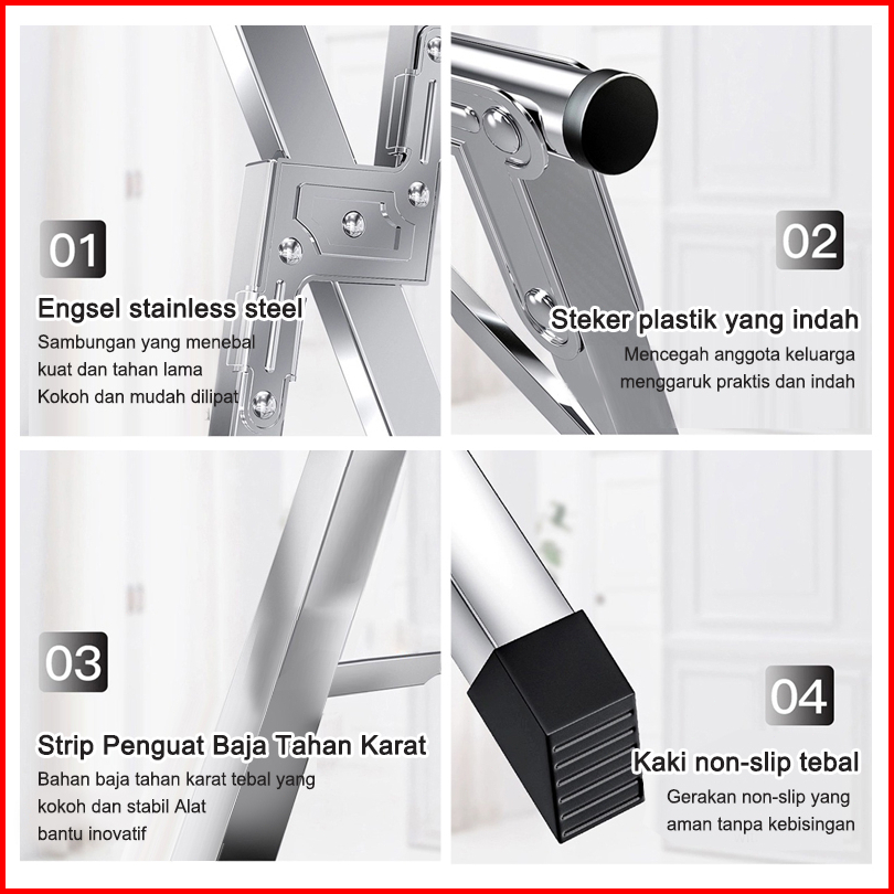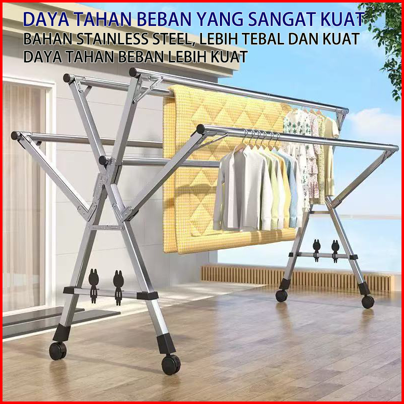 Jemuran Baju Lipat 5 Tiang Stainless Steel Dengan Roda - Daya Tahan Beban Sangat Kuat Kokoh Anti Karat 240cm