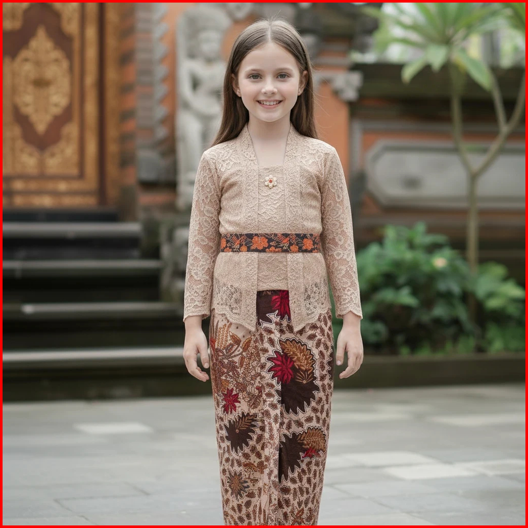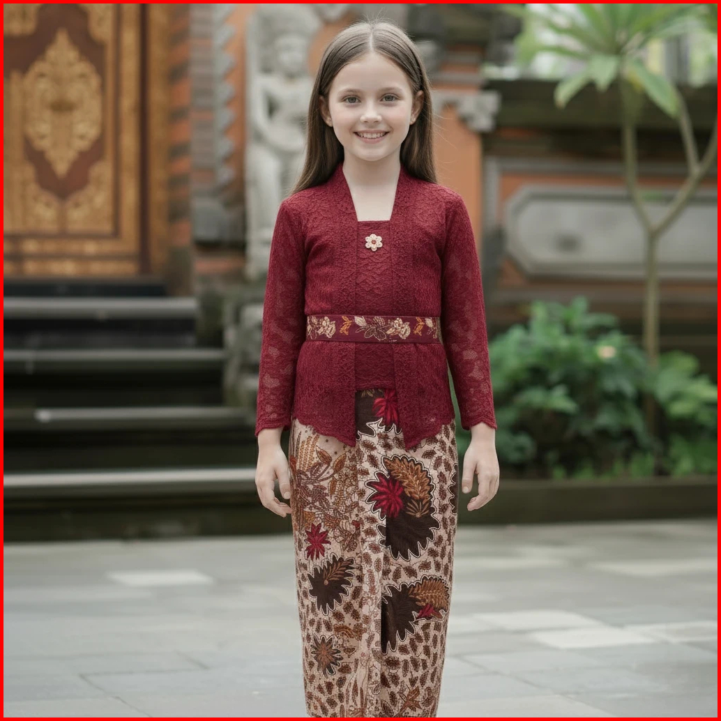 Setelan Kebaya Brokat Bali Anak Perempuan Lengan Panjang Usia 1-9 Tahun