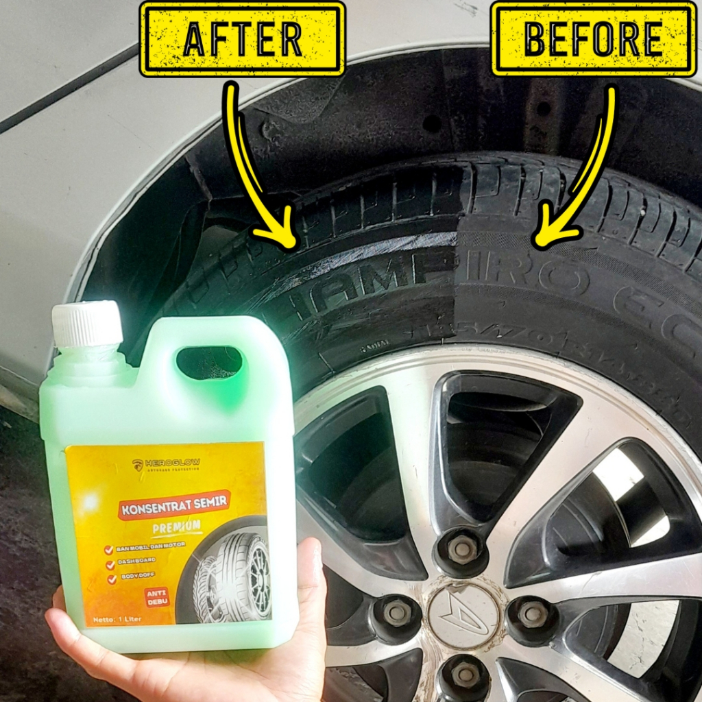 Heroglow Konsentrat Semir 1Liter Pengkilap Ban Dashboard Jok & Body Doff Mobil Premium