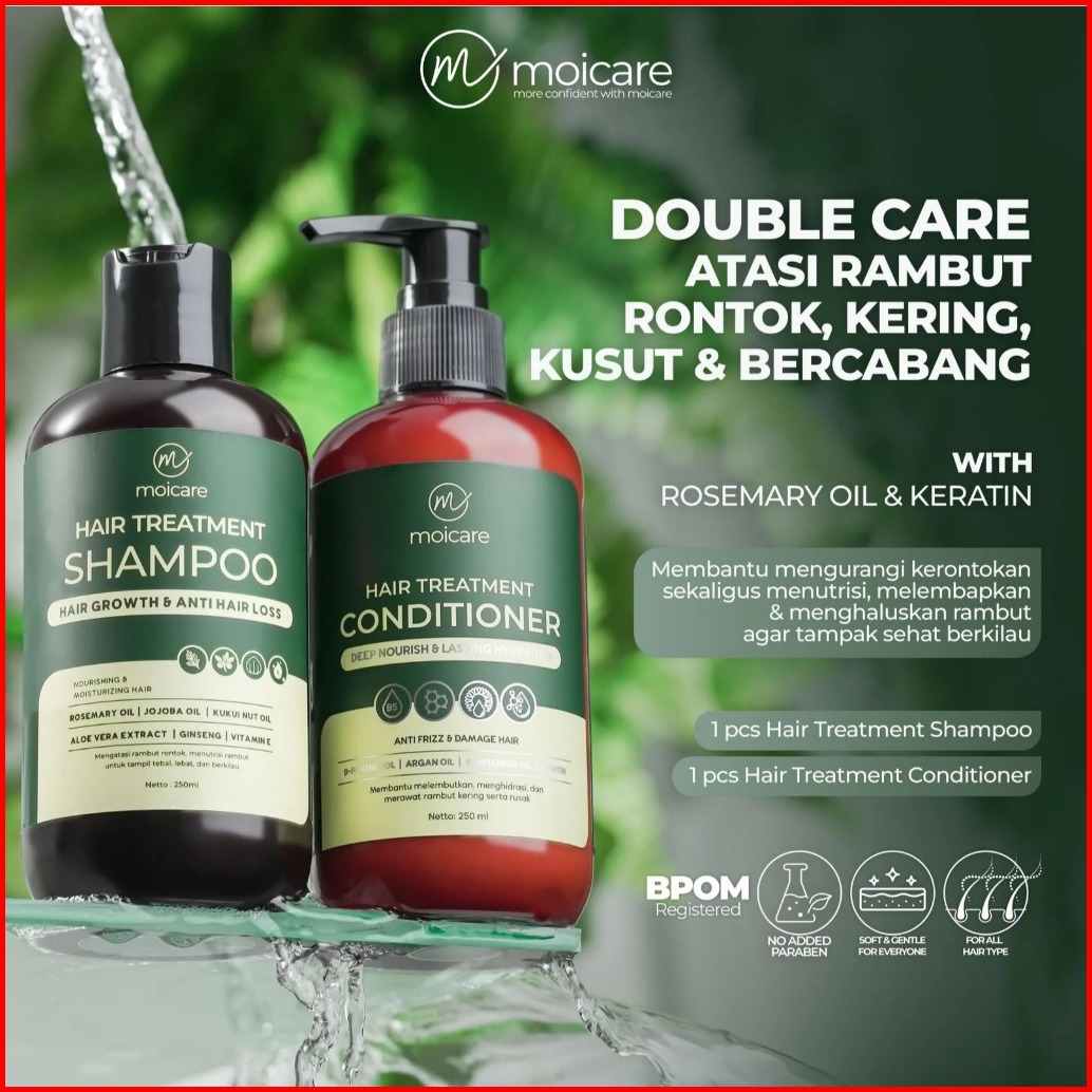 Moicare Paket Combo Hair Treatment Shampoo 250ml Hair Treatment Conditioner 250ml Perawatan Rambut Rontok Kusut Melebatk