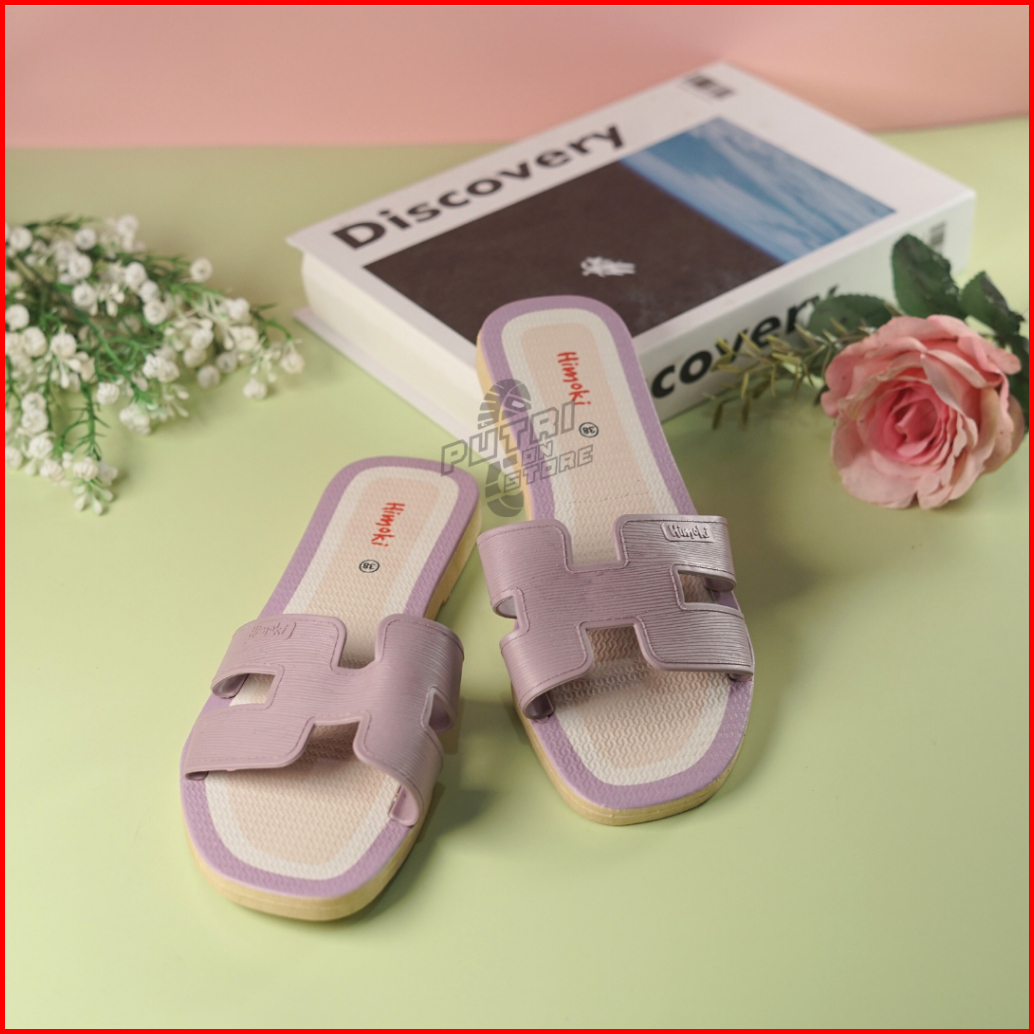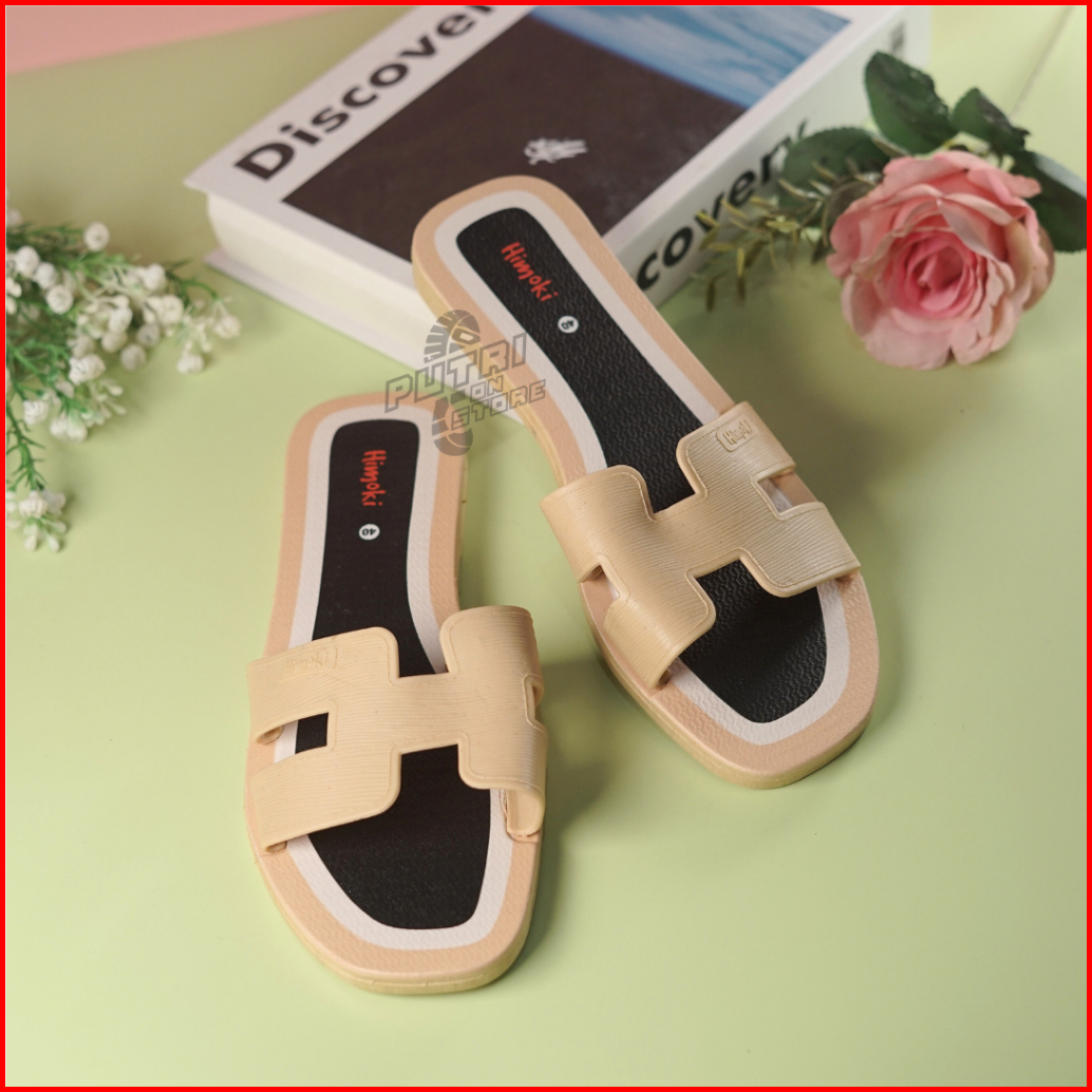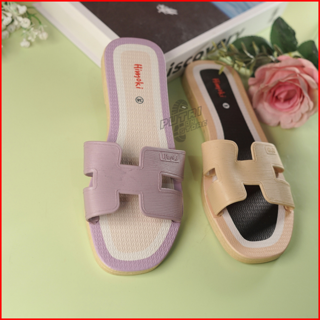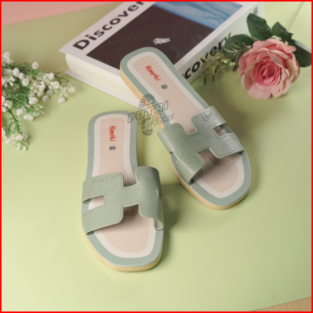 Sandal Korea Wanita Flat Harian Bahan Karet Elegan