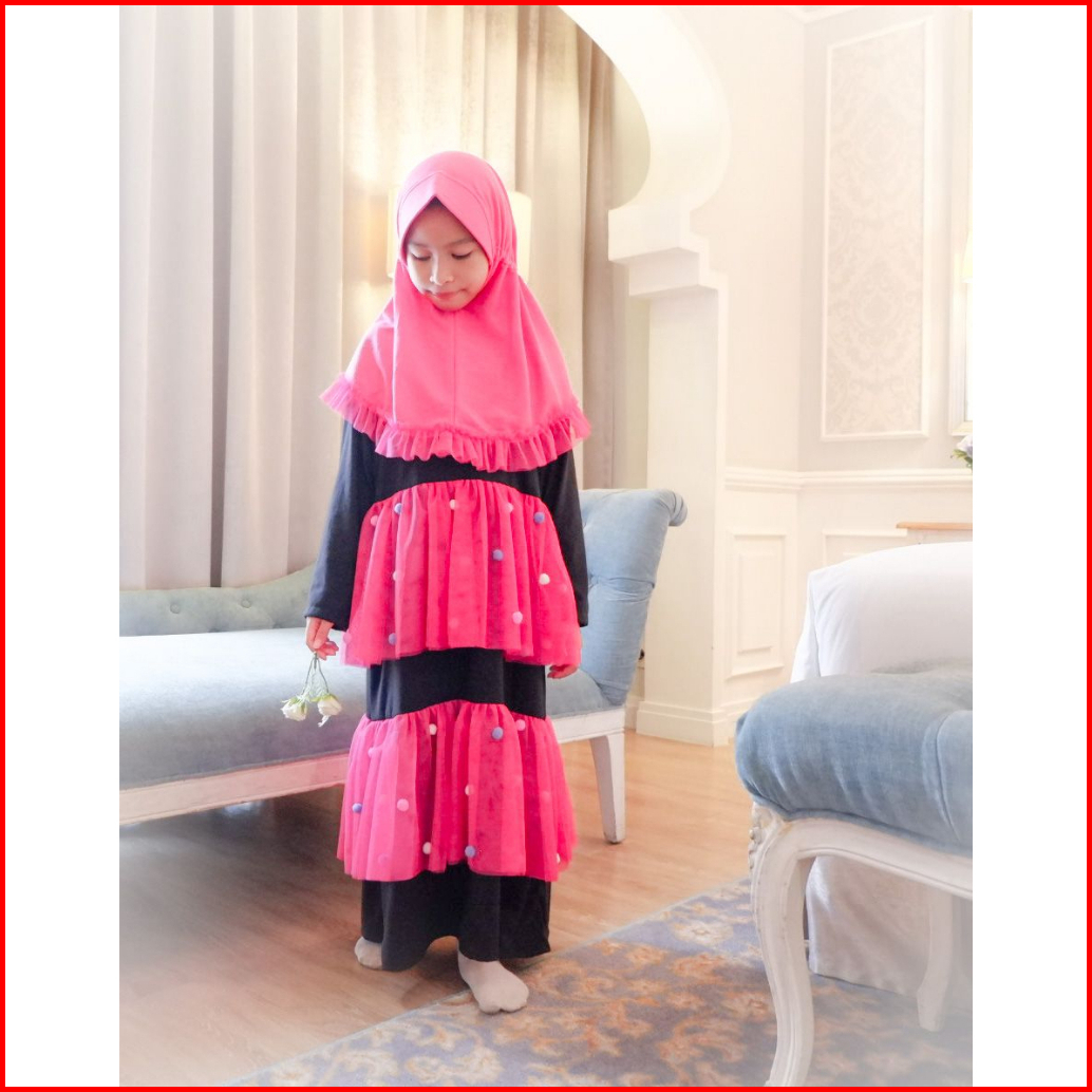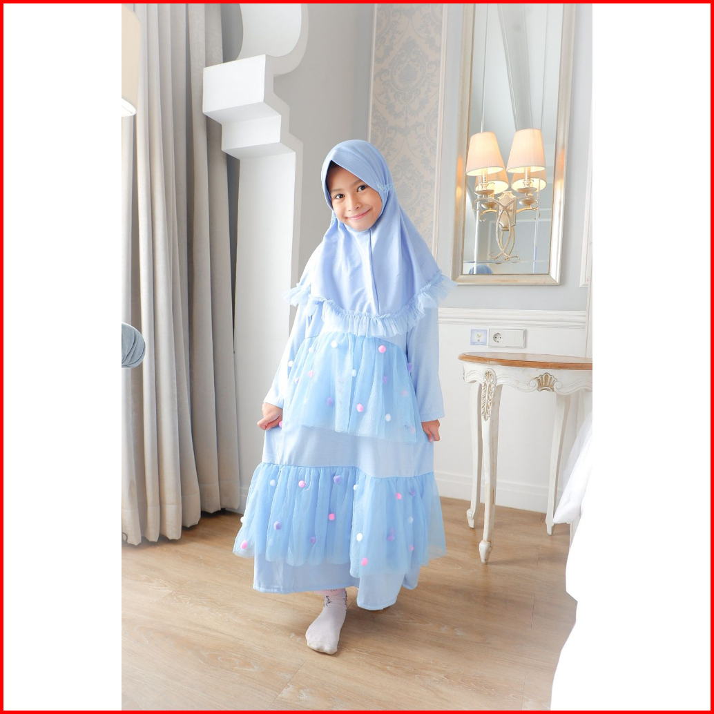 Jpuff Sweet Pompom Long Dress Anak Perempuan - Dres Anak Anak Cewek