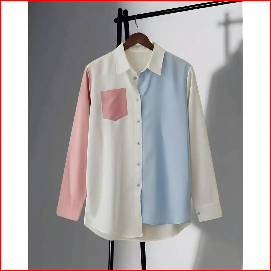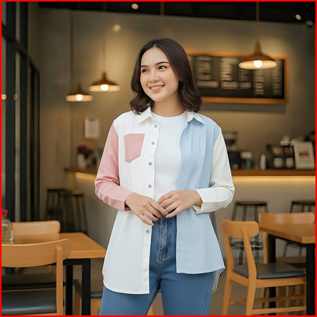 Vallina Outfit - Rainbow Shirt Kemeja Korean Look Blouse Kantor Linen Rami Atasan Kerja Premium