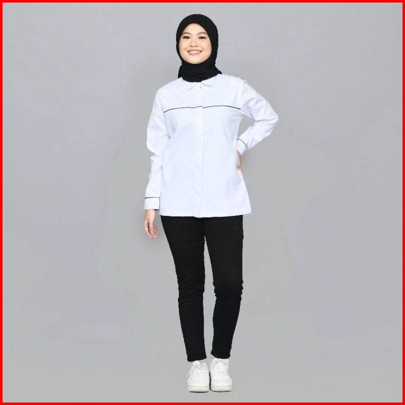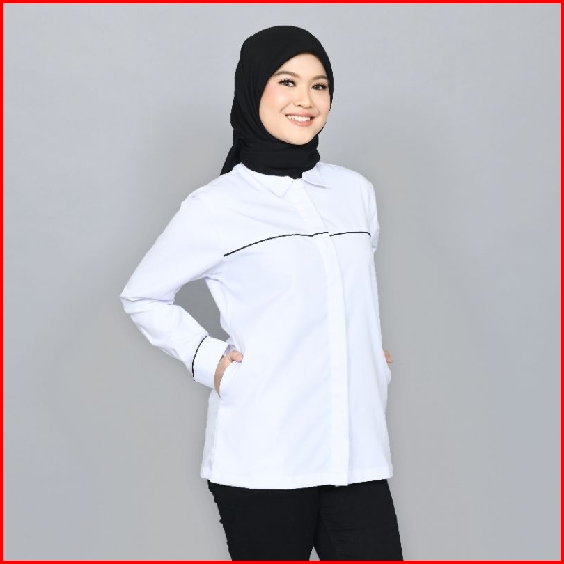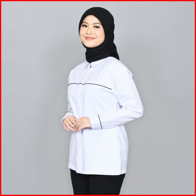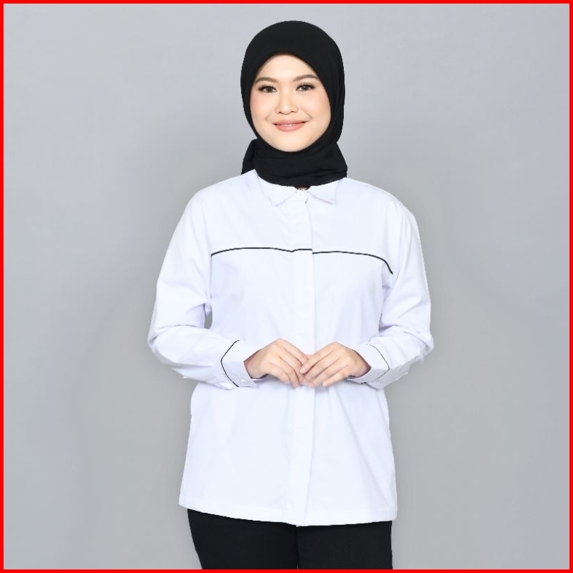 Pdl Wanita Kemeja Lengan Panjang Tropical Putih S-4xl