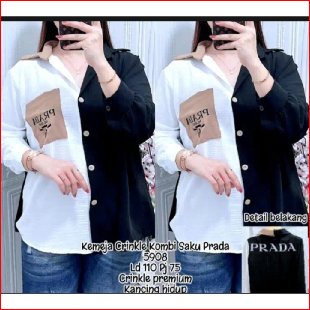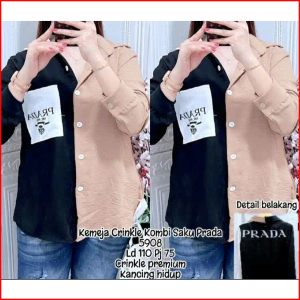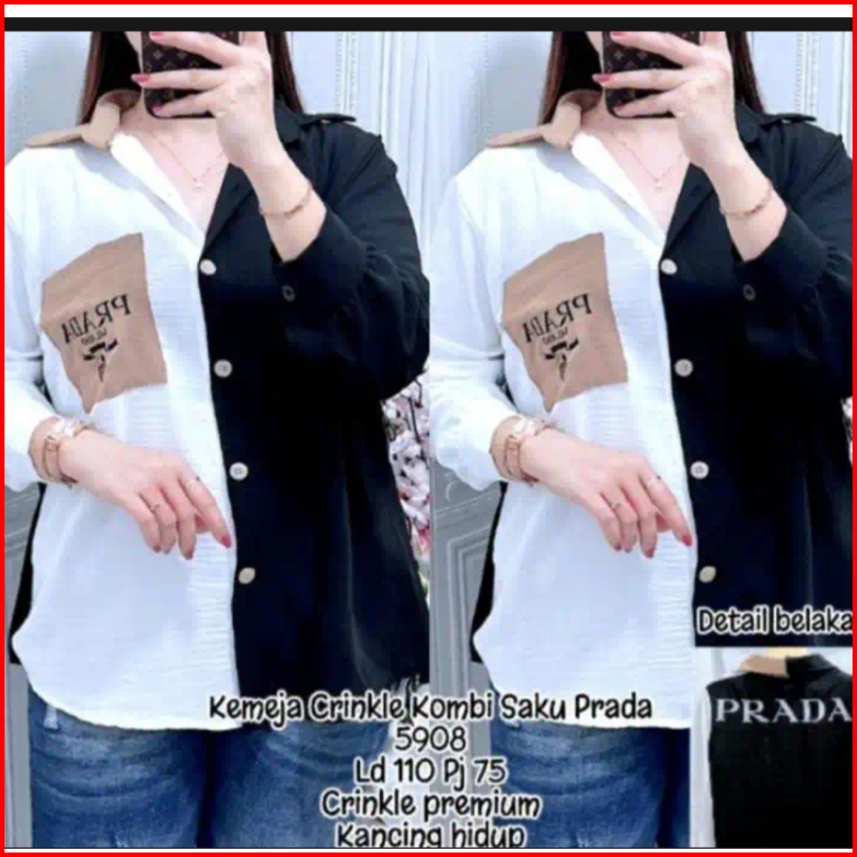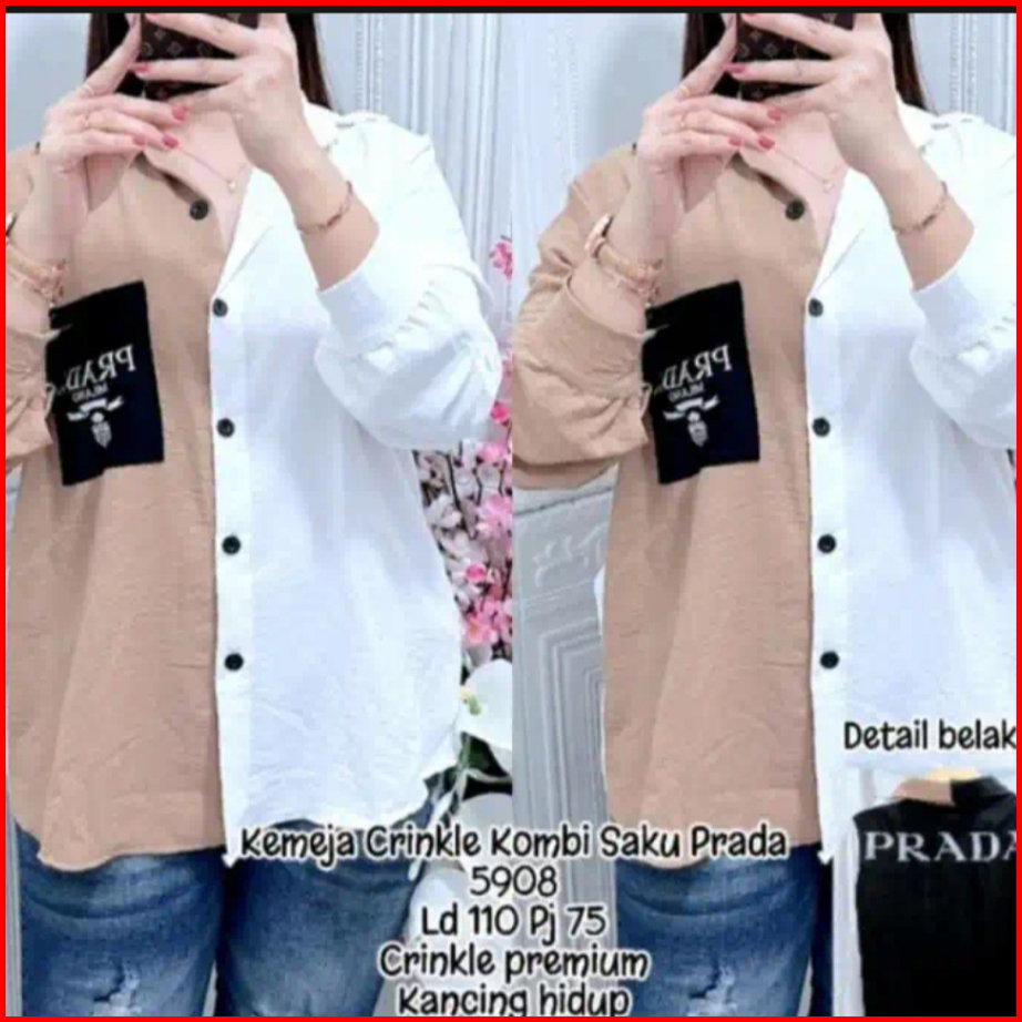 Kemeja Wanita Crinkle Kombi Saku Prada Korean Style