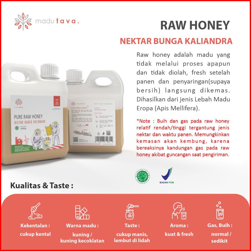Madu Murni Asli Tava Nektar Kaliandra 1kg Grade A 100 Alami Pure Natural Raw Honey