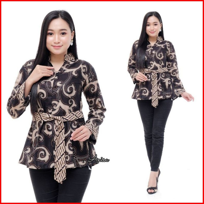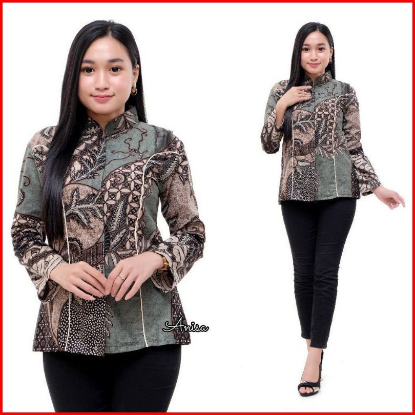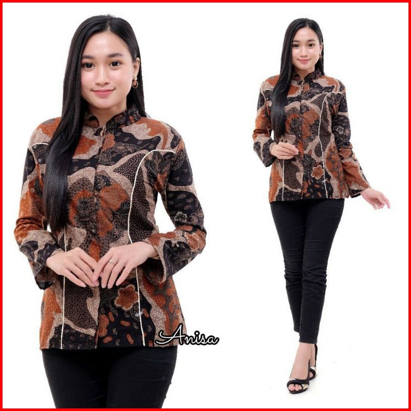 Tey-17 Batik Wanita Asj Sa Hrb026 Kenongo Kemeja Tosca Pendek Atasan Wanita Lengan Panjang By Berkah Shop