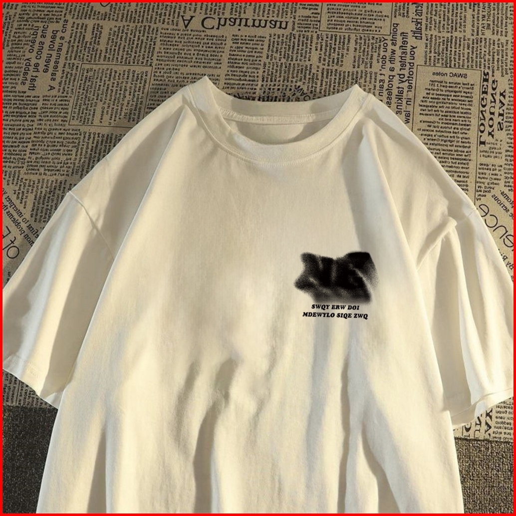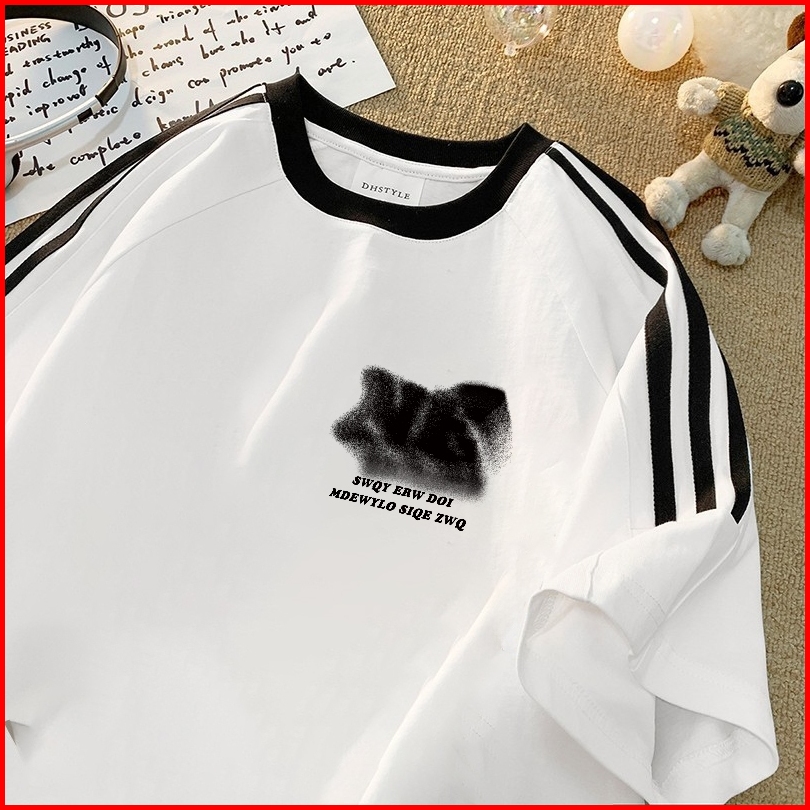 Fastfash Kaos Pakaian Pria Dan Wanita Oversize Lengan Pendek Tiga Garis Surat Artistik Hitam Baju Kaos Bergaya Netral T-