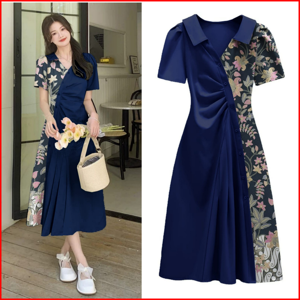 Fwg Dress Batik Wanita Kekinian Terbaru Pakaian Gaun Pesta Batik Motif Pakaian Dres Manela Kombinasi