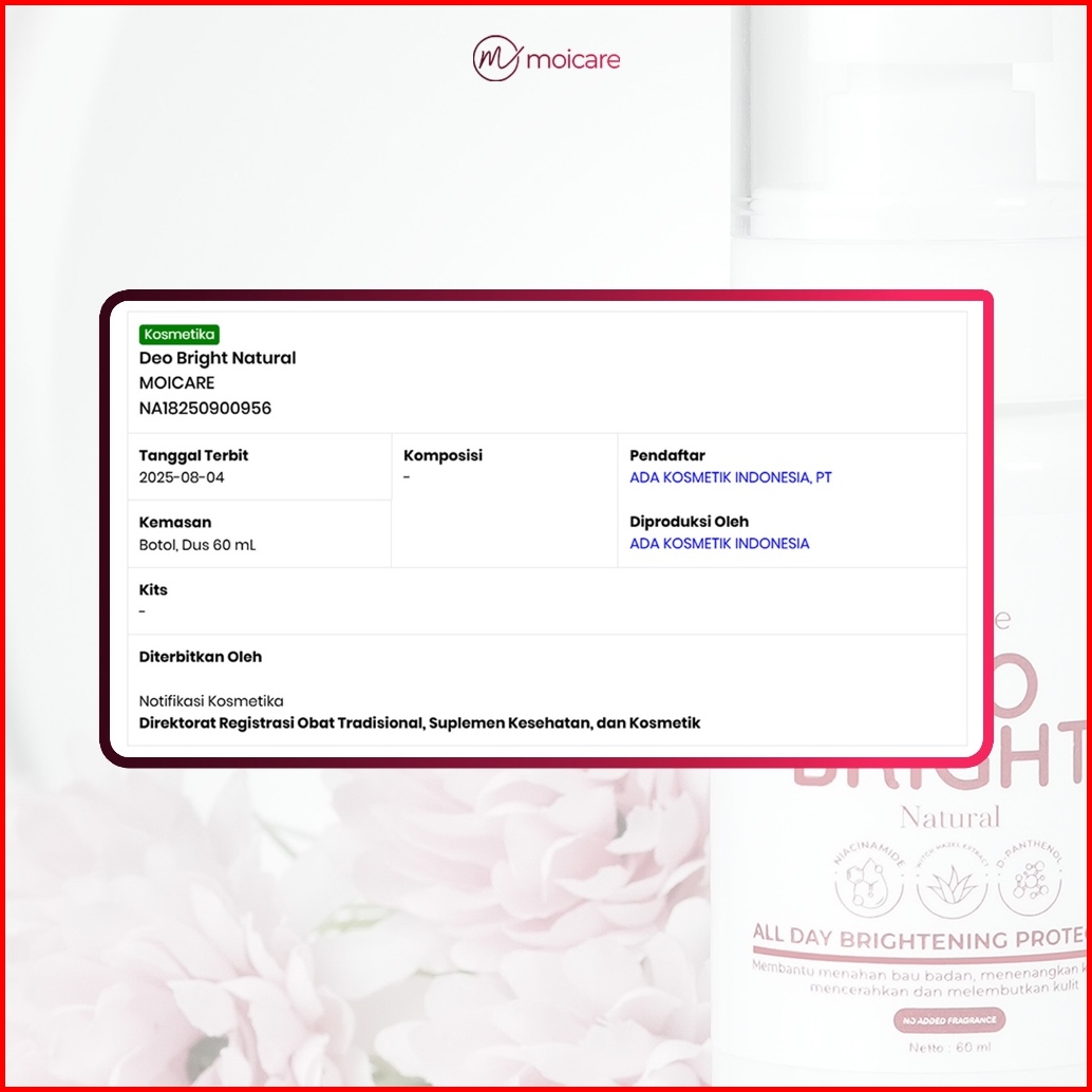 Moicare Deo Bright Natural 60 Ml - Deodorant Tawas Spray Non Alcohol Non Fragrance Pencegah Bau Badan Ketiak Mencerahkan