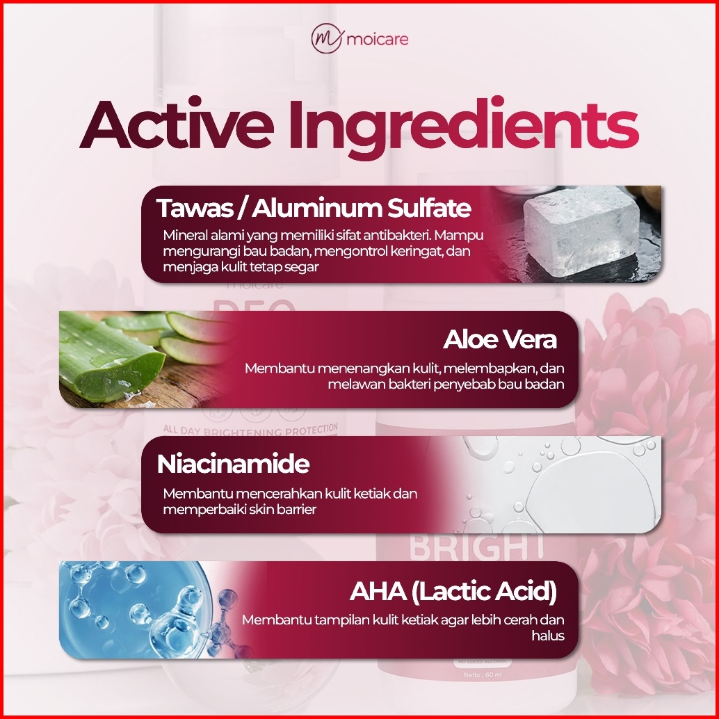Moicare Deo Bright 60 Ml - Deodorant Tawas Spray Non Alcohol Pencegah Bau Badan Ketiak Mencerahkan Melembutkan Ketiak