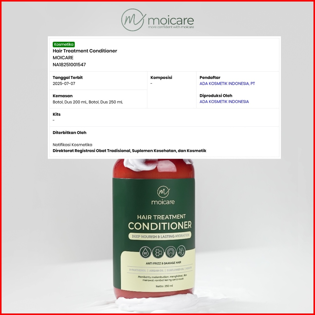 Moicare Hair Treatment Conditioner 250ml I With D-panthenol Argan Oil Sunflower Oil Keratin I Melembapkan Dan Mengatasi