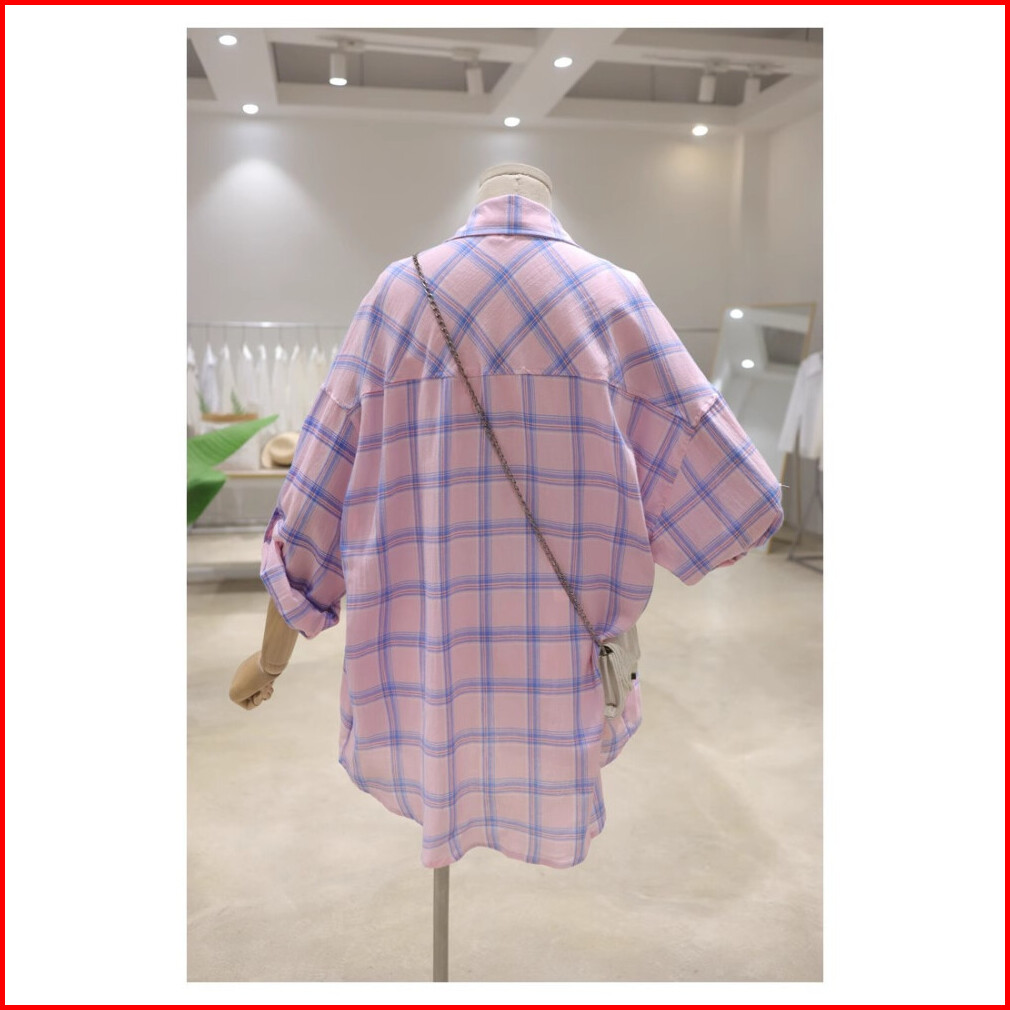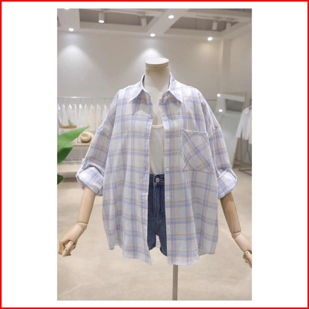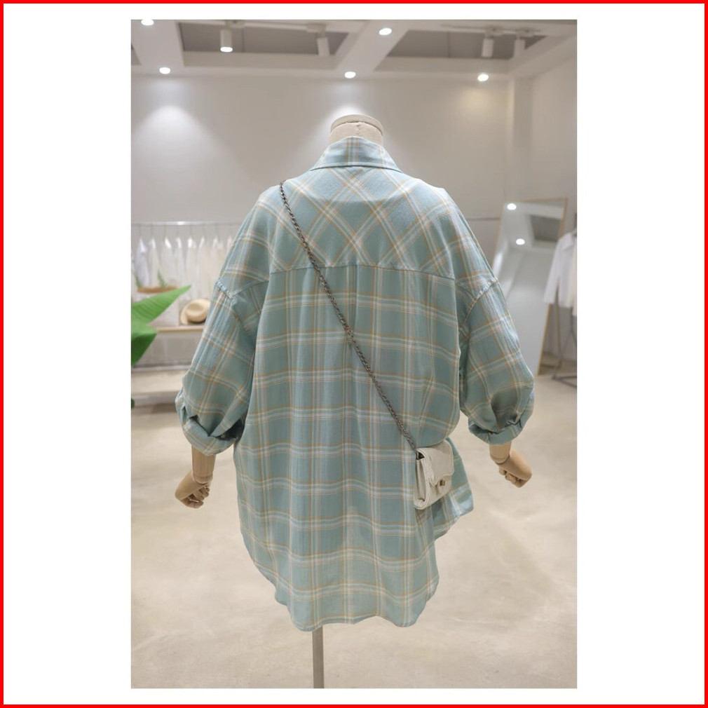 Atasan Kemeja Lengan Panjang Kotak-kotak Longgar Dan Ramping Untuk Wanita